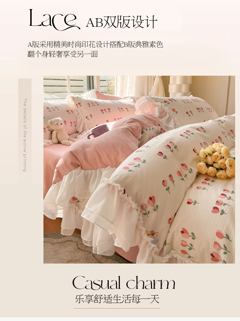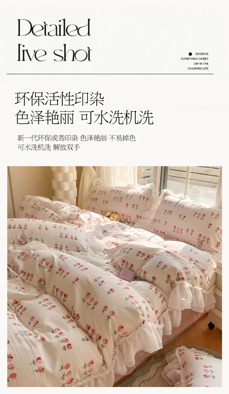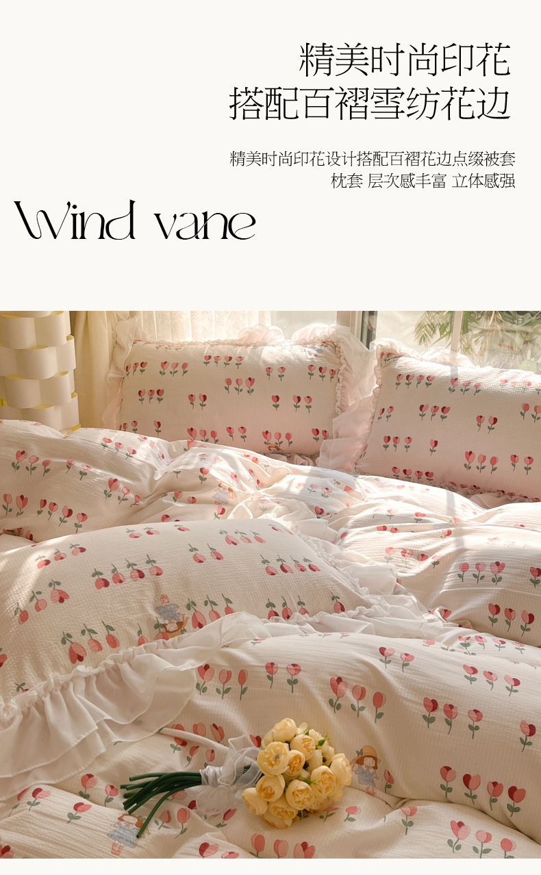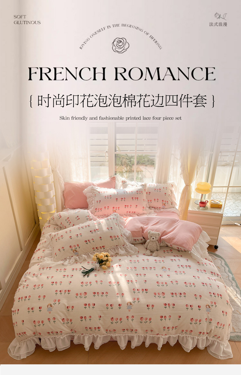 商品名称:慕澄 2024新款时尚印花泡泡棉花边四件套 伊梦