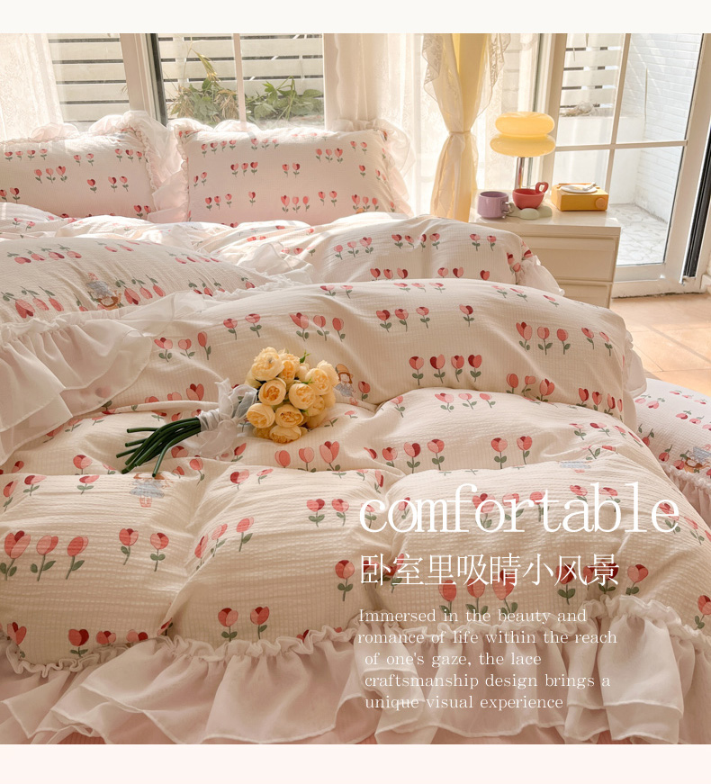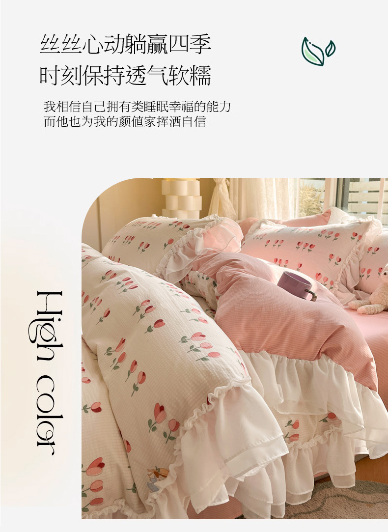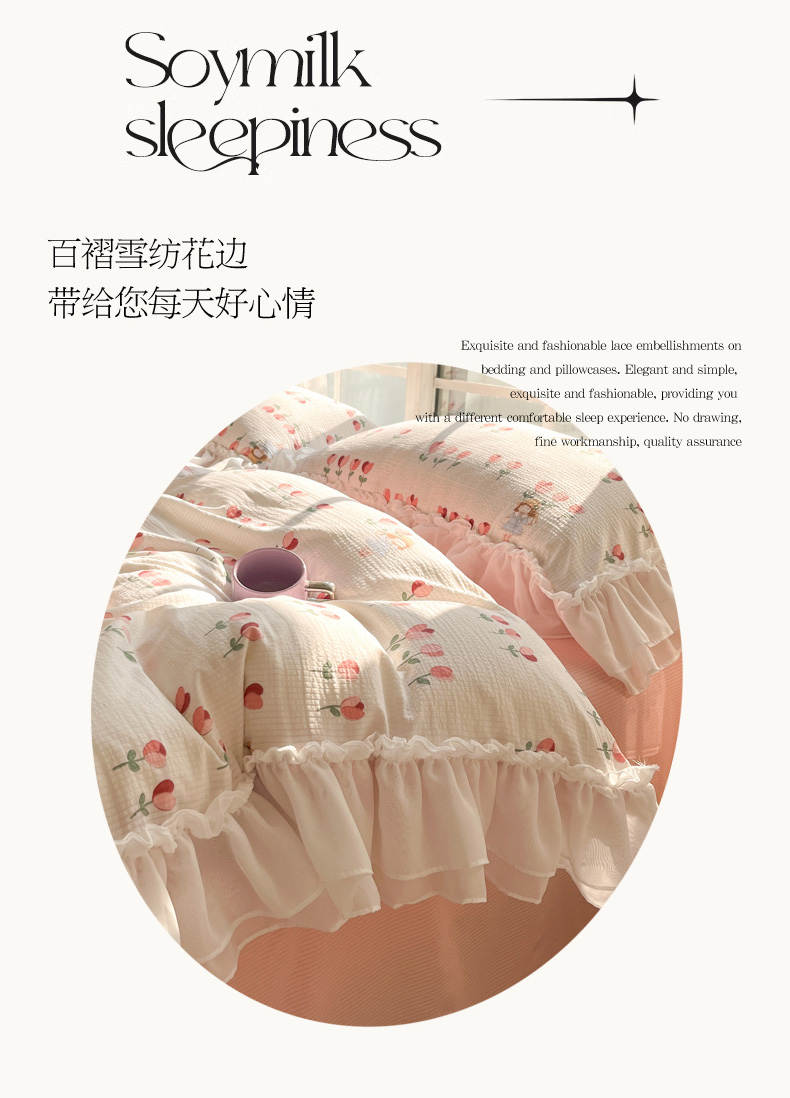 慕澄 2024新款时尚印花泡泡棉花边四件套 伊梦