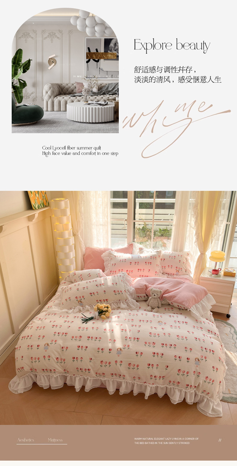 慕澄家纺 2024新款时尚印花泡泡棉花边夏被夏凉被空调被 夏被-如愿,夏被-如愿