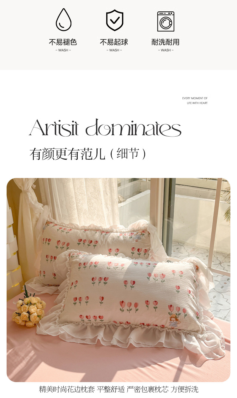 总慕澄家纺 2022新款韩版泡泡纱花边四件套(手机实拍),公主粉,极致灰,梨花白,梨花白+灰,奶油黄,宁静蓝,优雅紫