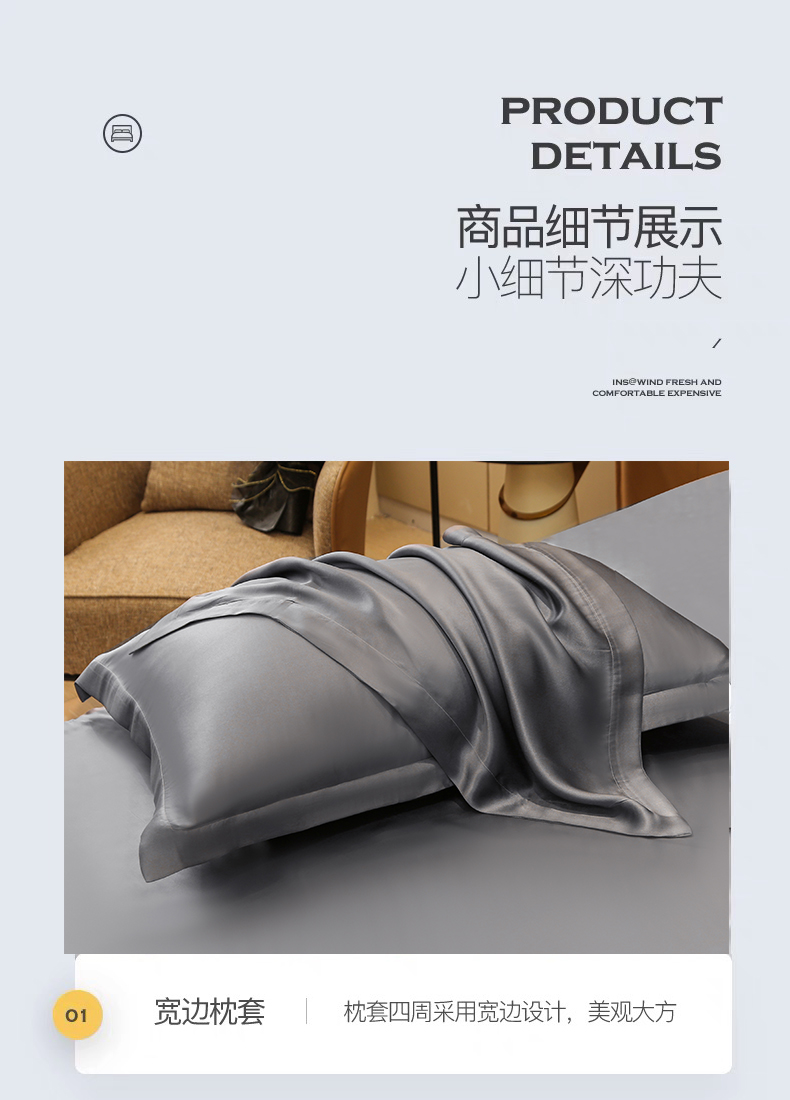 商品名称:凯森家纺 2024新款双面真丝宽边款枕头套枕芯套 双面金属灰