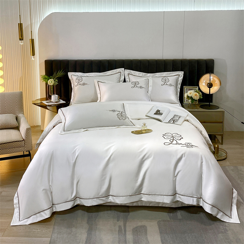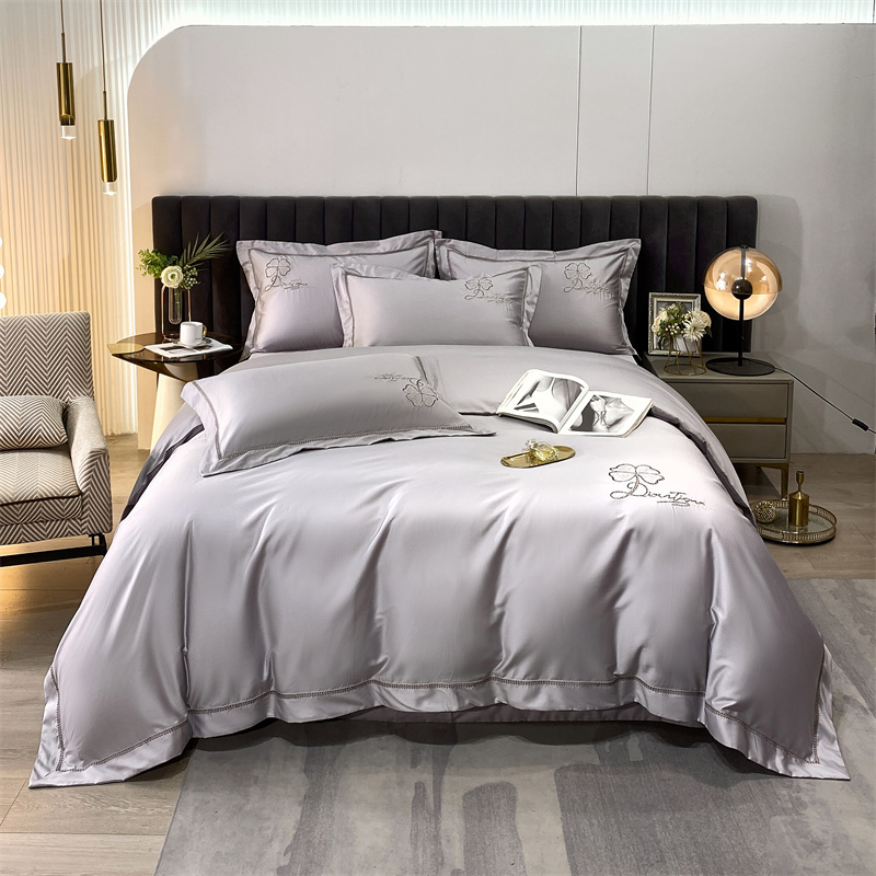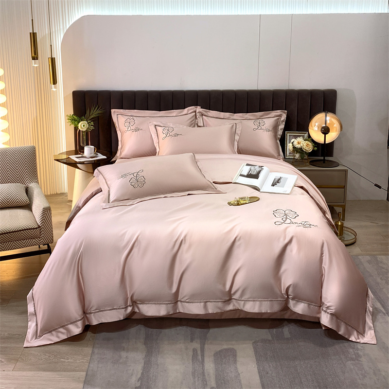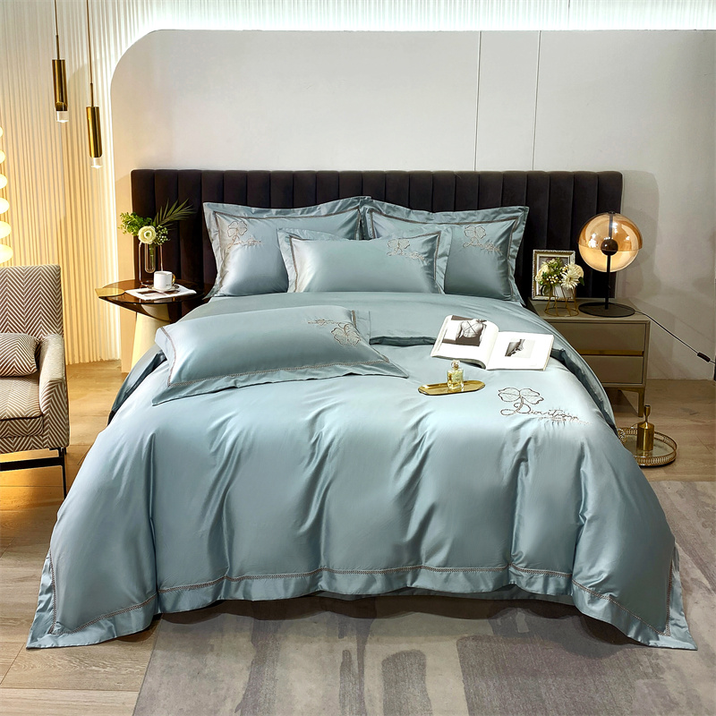 (总)玖玖爱家纺 2023新款120支贡缎长绒棉刺绣梦柔系列四件套,梦柔-香槟金,梦柔-香橙桔,梦柔-高级灰,梦柔-水蓝,梦柔-芙蓉玉