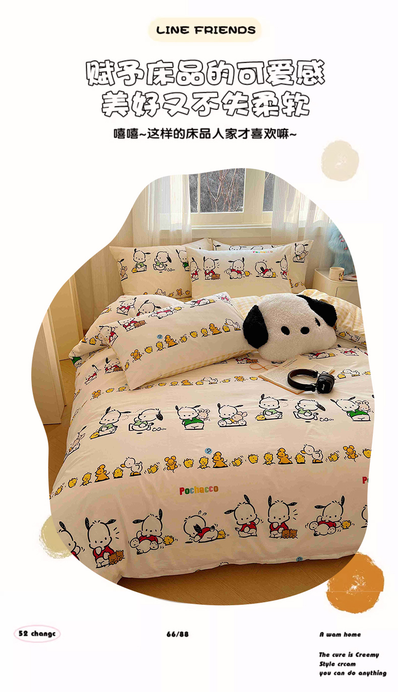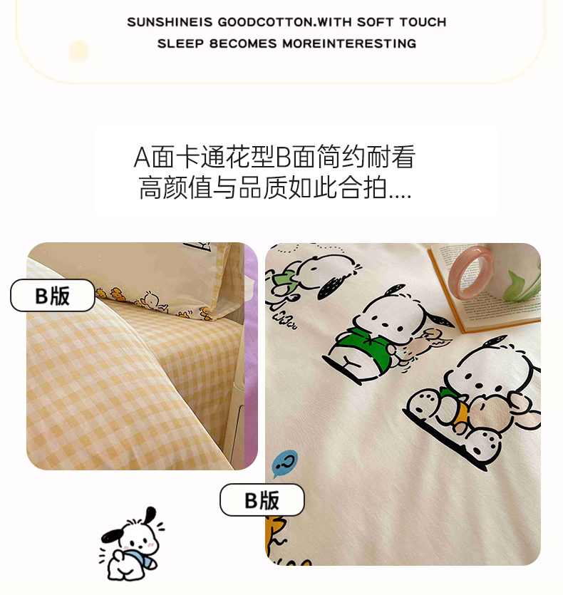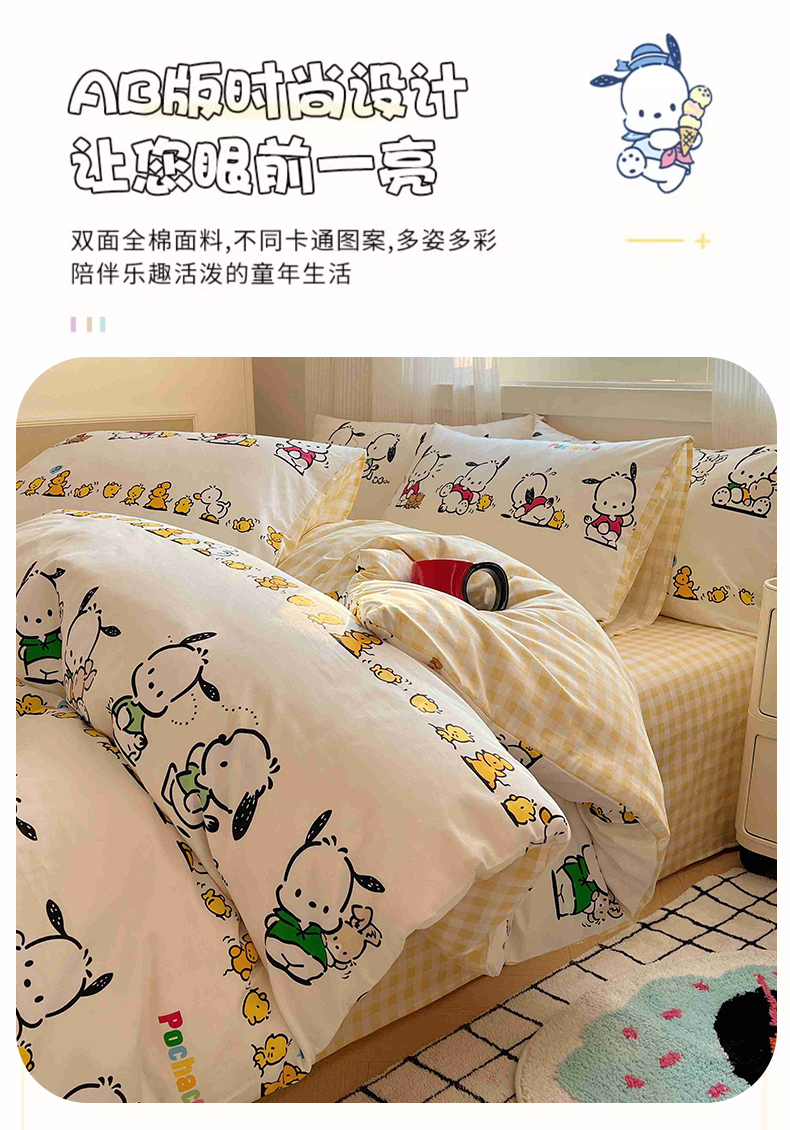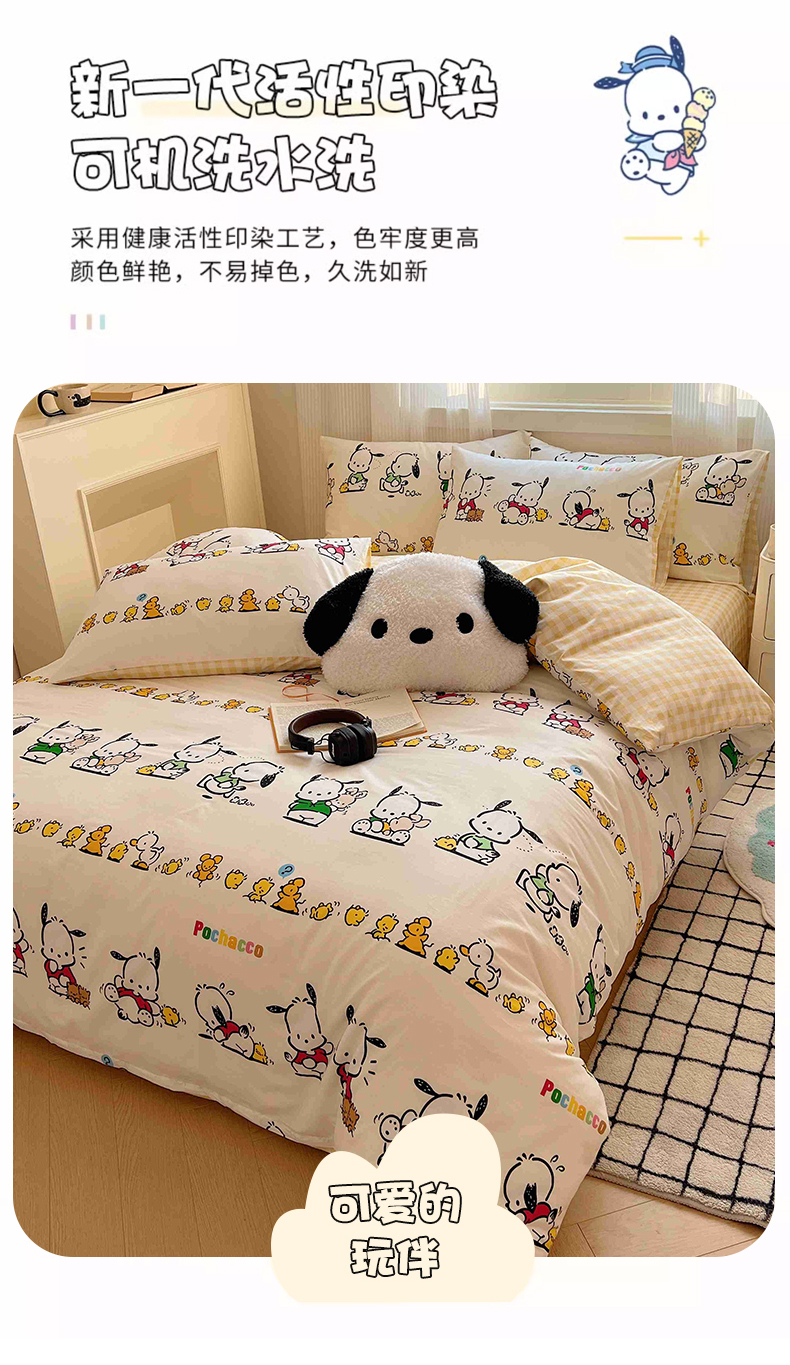 商品名称:星座家纺 2025新款40s全棉卡通印花四件套 快乐帕恰狗