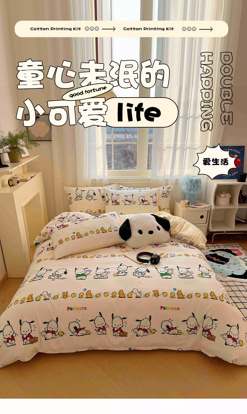 星座家纺 2025新款40s全棉卡通印花四件套 快乐帕恰狗