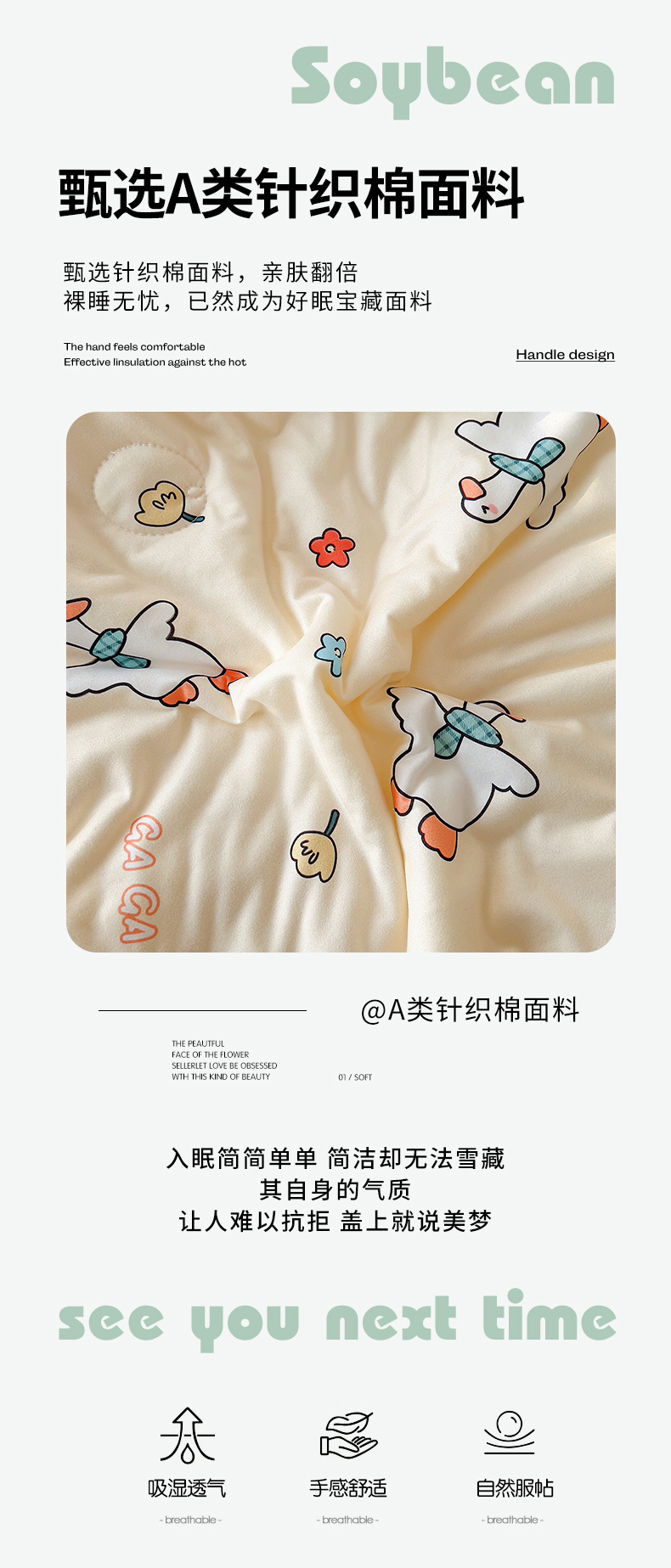 商品名称:木堇家居 2024新款10%大豆纤维针织棉夏被 开心鸭鸭