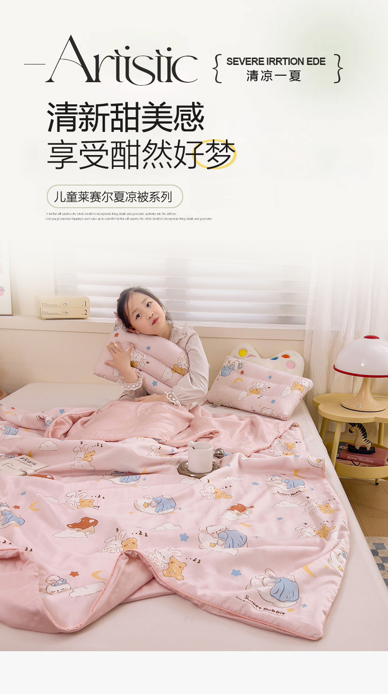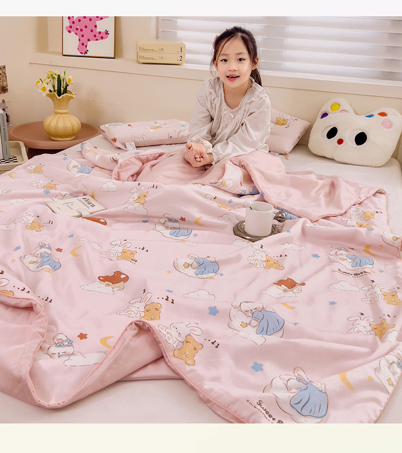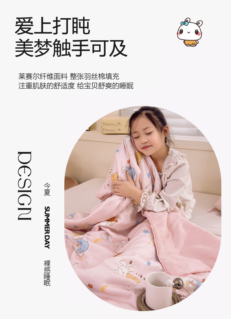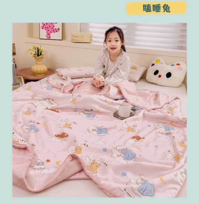 商品名称:十九色 2024新款60天丝印花儿童夏被 瞌睡兔