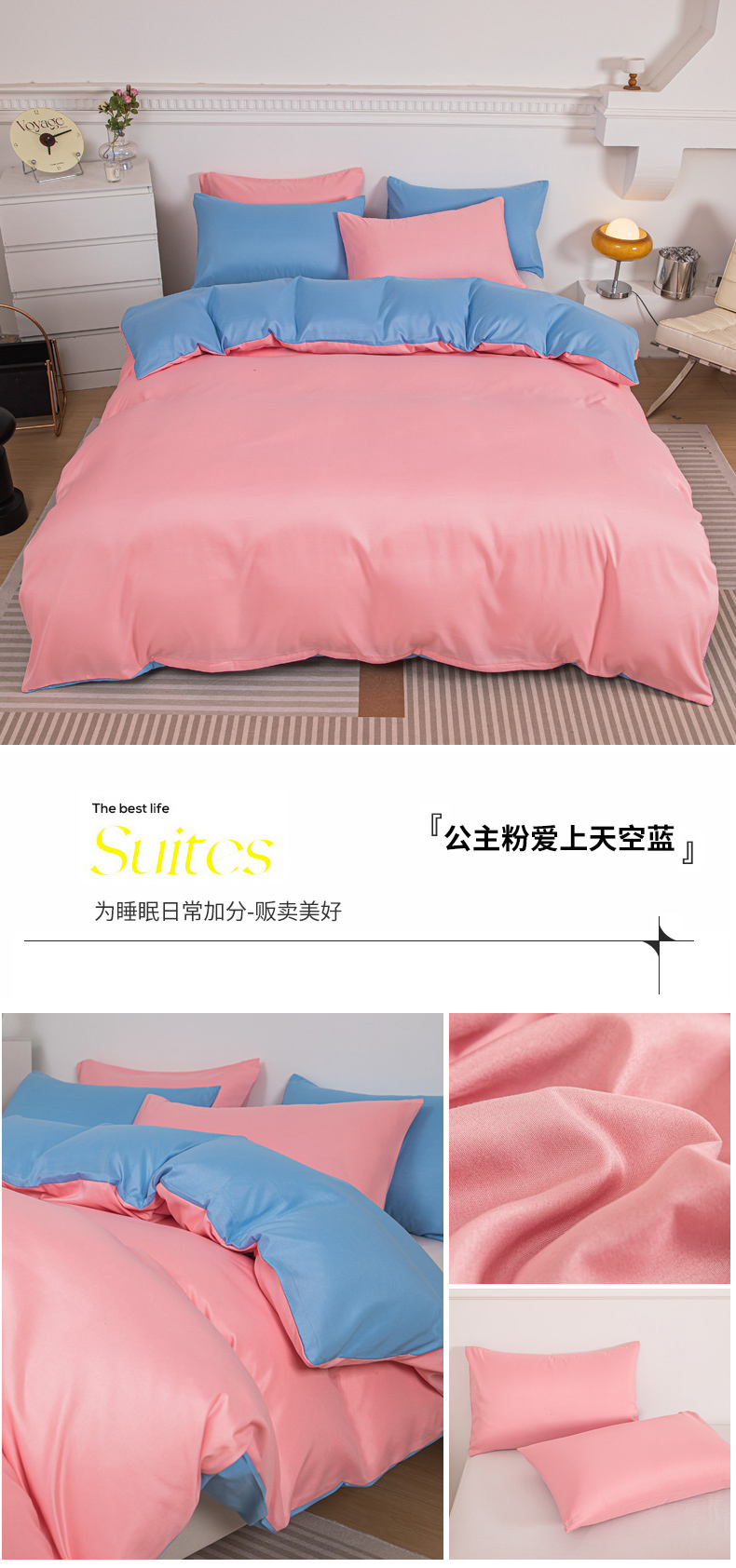 商品名称:莎臣豹 2025新款水洗棉磨毛纯色双拼简约风撞色单品被套 公主粉爱上天空蓝