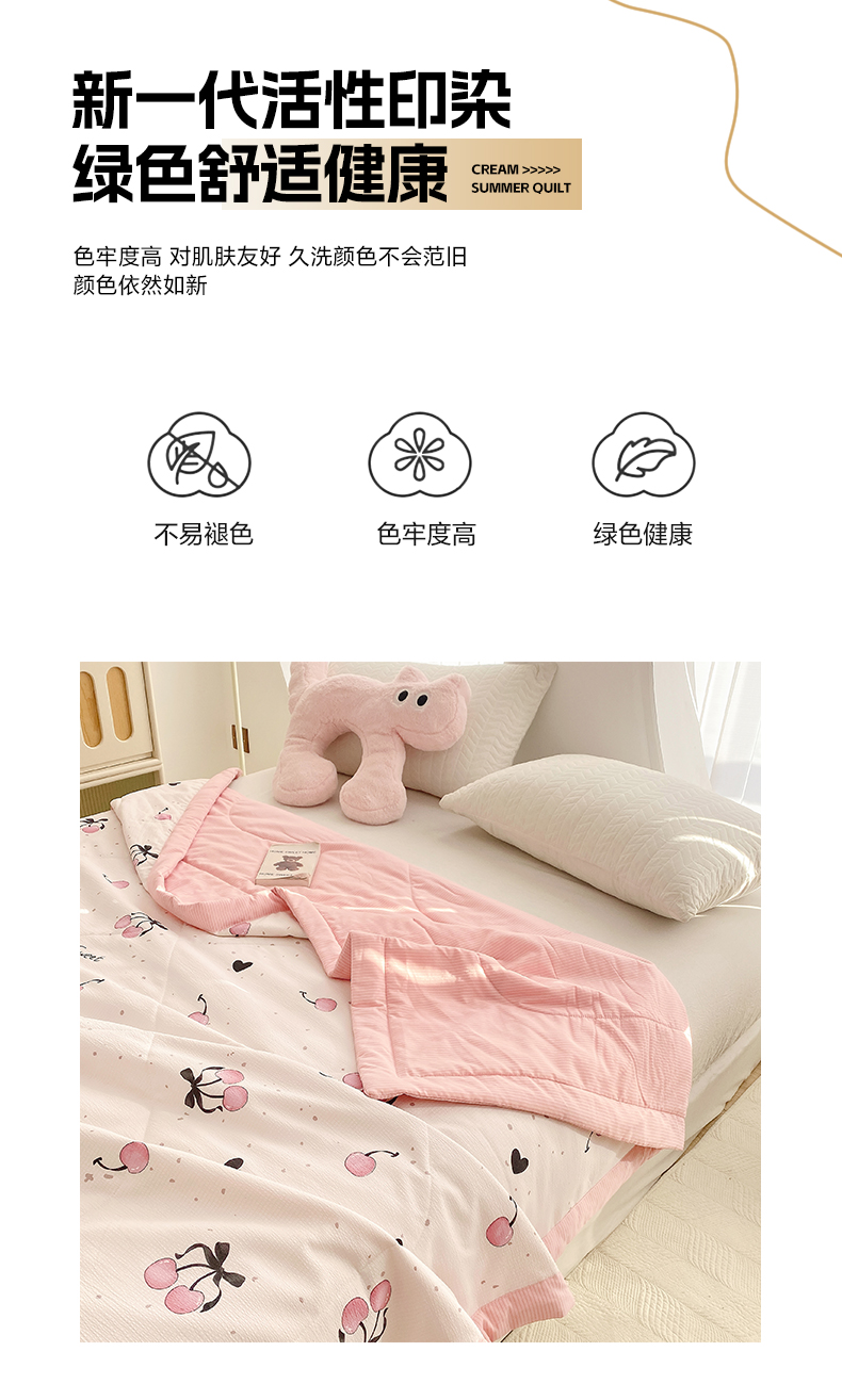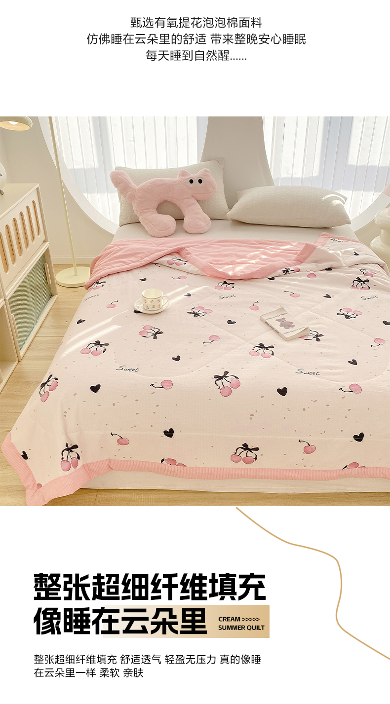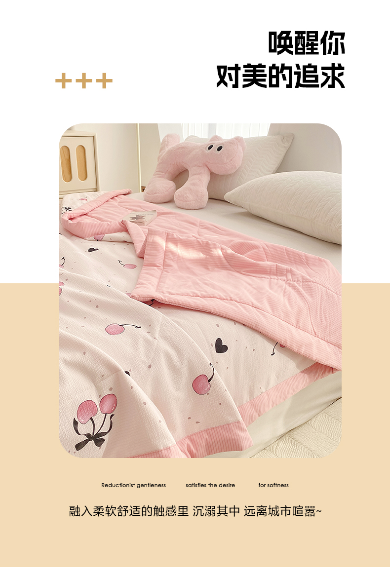 金麦 2024新款A类有氧提花泡泡棉夏被 粉樱桃