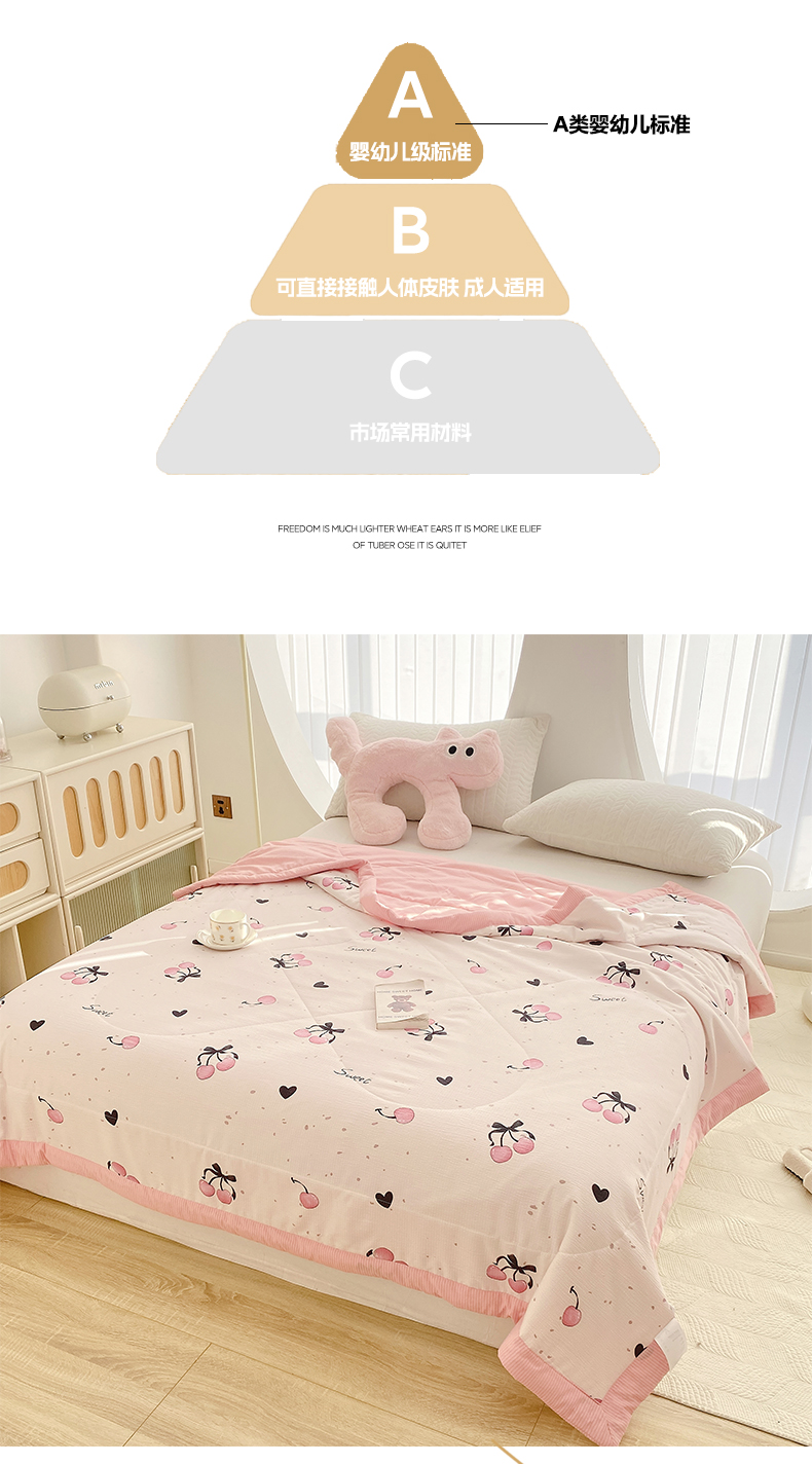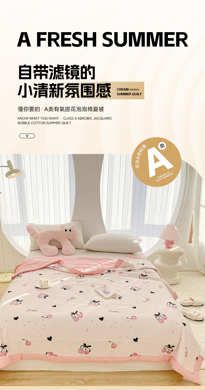 商品名称:金麦 2024新款A类有氧提花泡泡棉夏被 粉樱桃