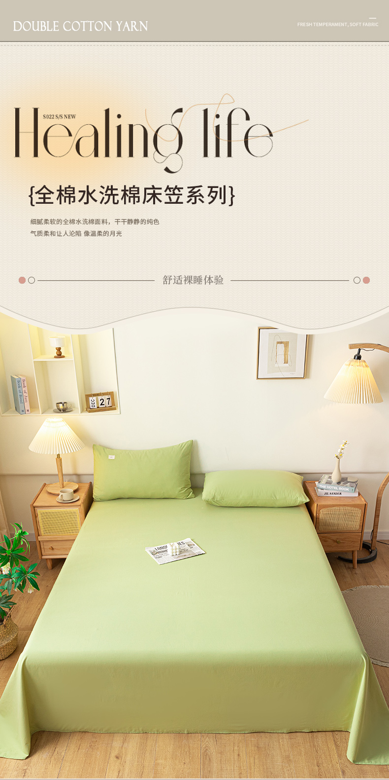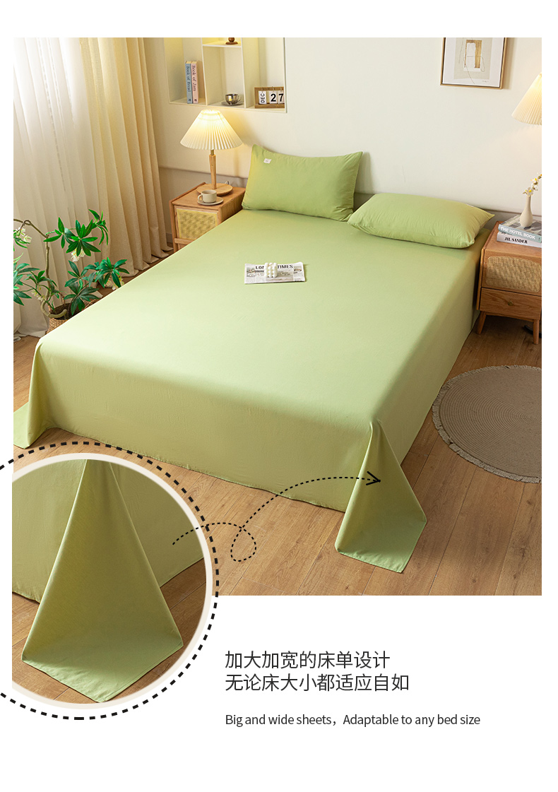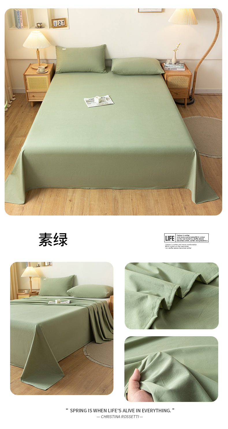 • 91家纺网 家纺一手货源 找家纺 AB家纺 2024新款A类40支水洗全棉床单三件套 素绿