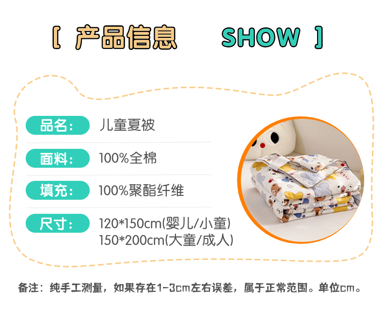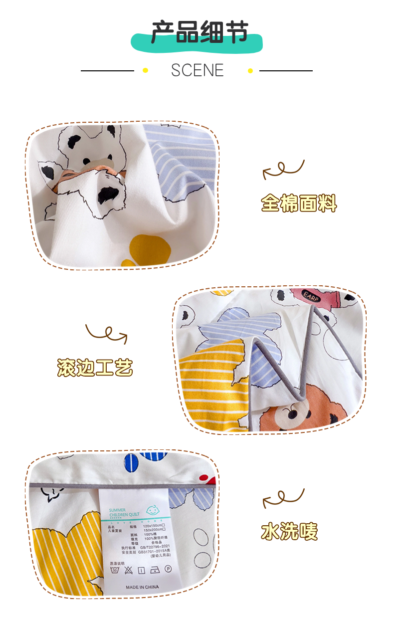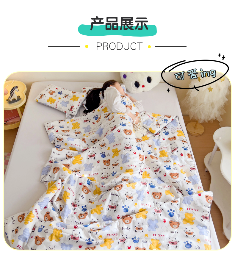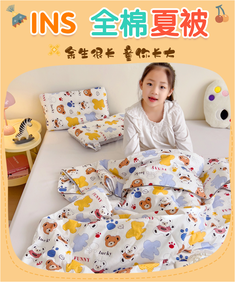 商品名称:十九色 2024新款全棉13372 ins儿童夏被 饼干熊