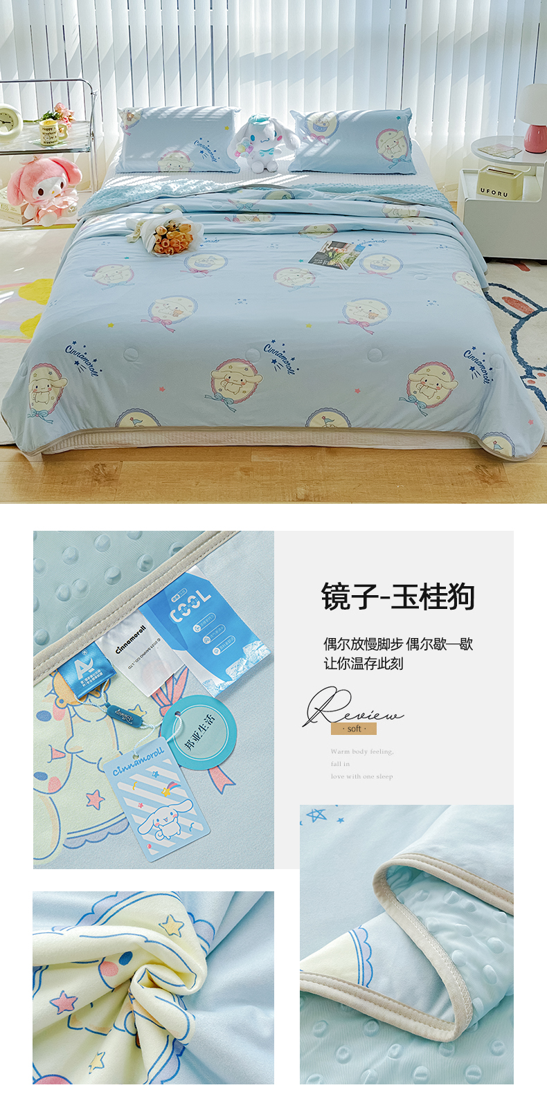 米米儿家纺 2024新款A类针织棉凉豆豆夏被夏凉被空调被-三丽鸥系列 镜子-玉桂狗