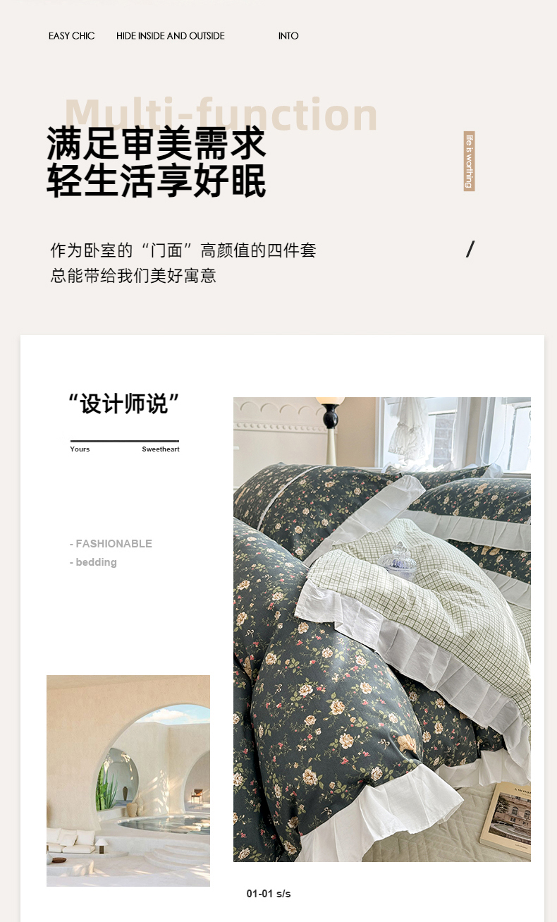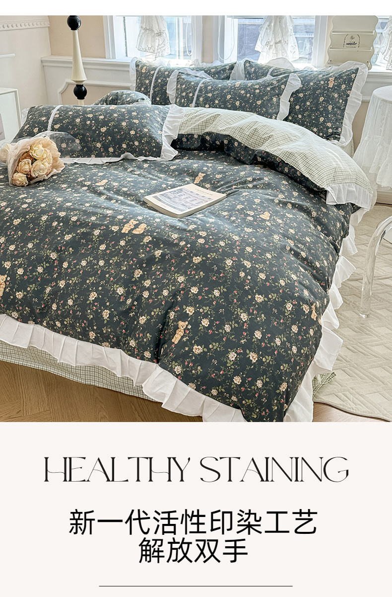 (总)简宜家居 2023新款纯棉全棉斜纹小清新宽边四件套,初遇见,繁花咖,花忆粉,青稚,倾心紫,素雅灰,东篱,锦簇,烂漫,浅牧