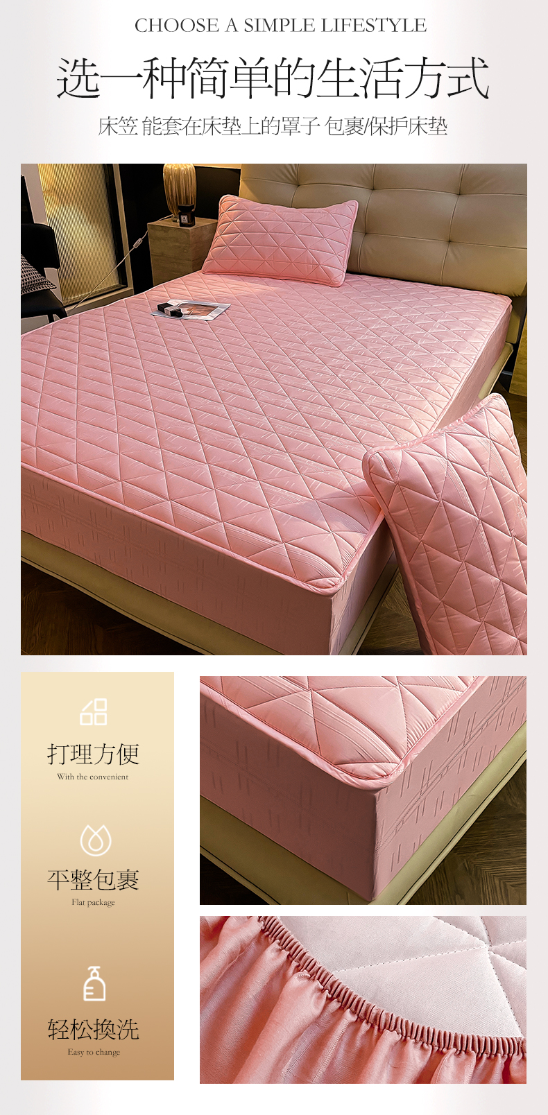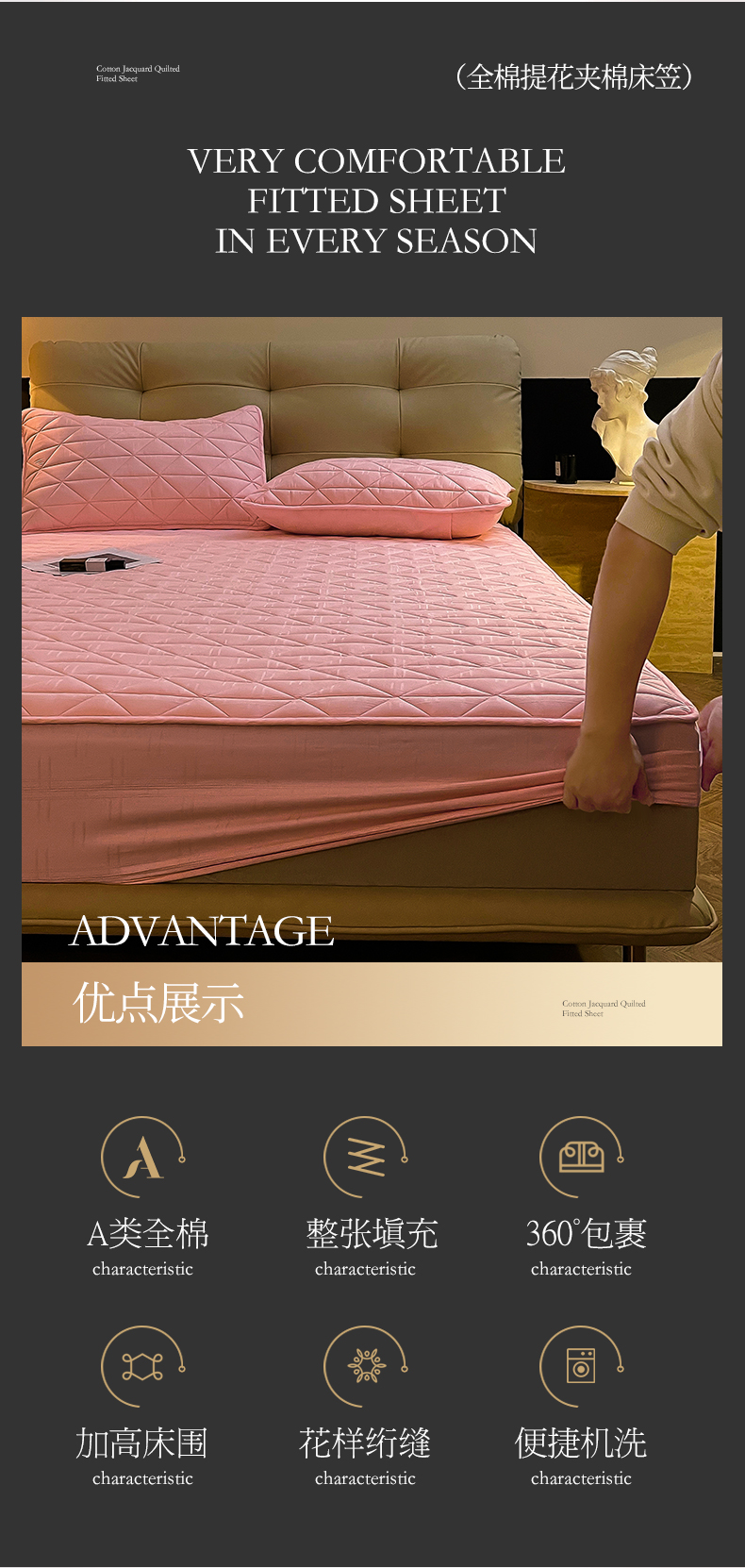 商品名称:3C 2024新款夹棉60提花床笠 胭脂粉