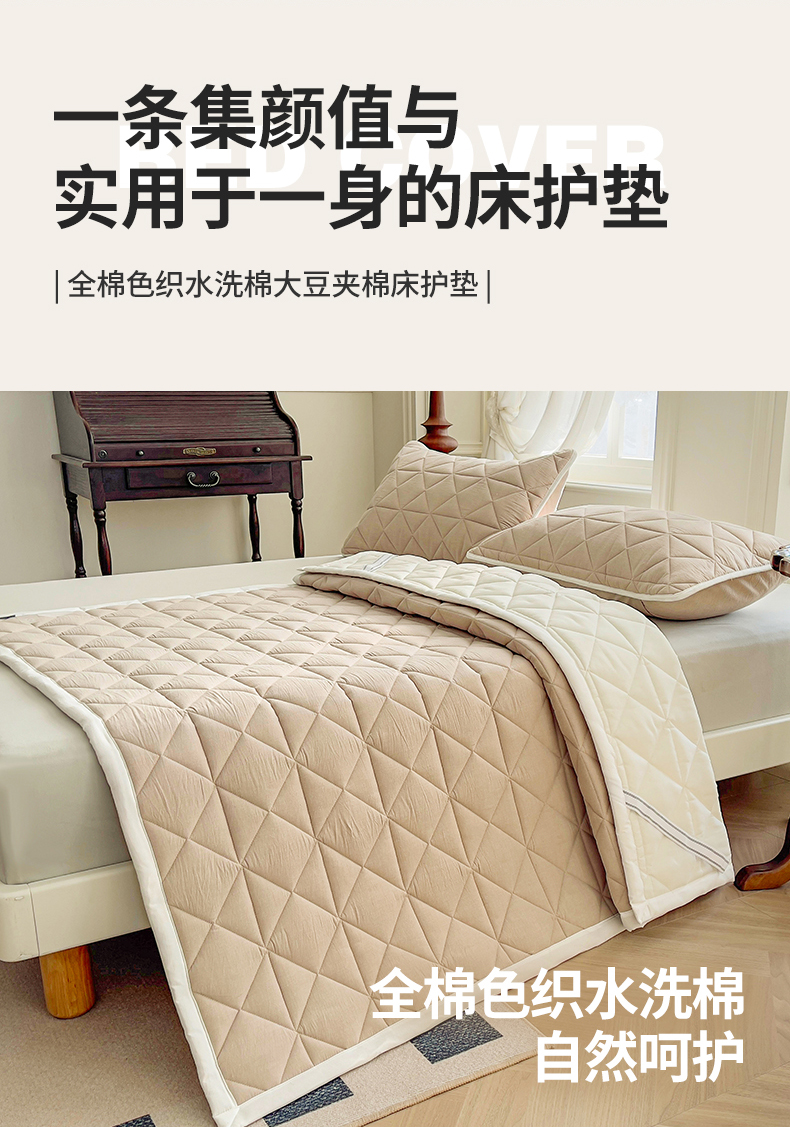 当前位置: 91家纺网 > 商品网购 > 床垫/床褥 > 普通床垫 > 3C 2024新款全棉夹棉大豆床护垫 浅驼