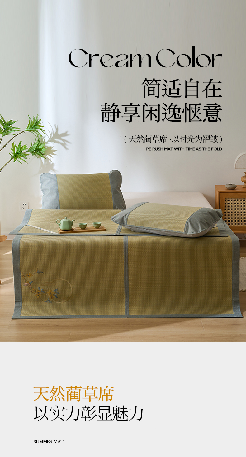 商品名称:(总)2024新款刺绣天然蔺草席三件套