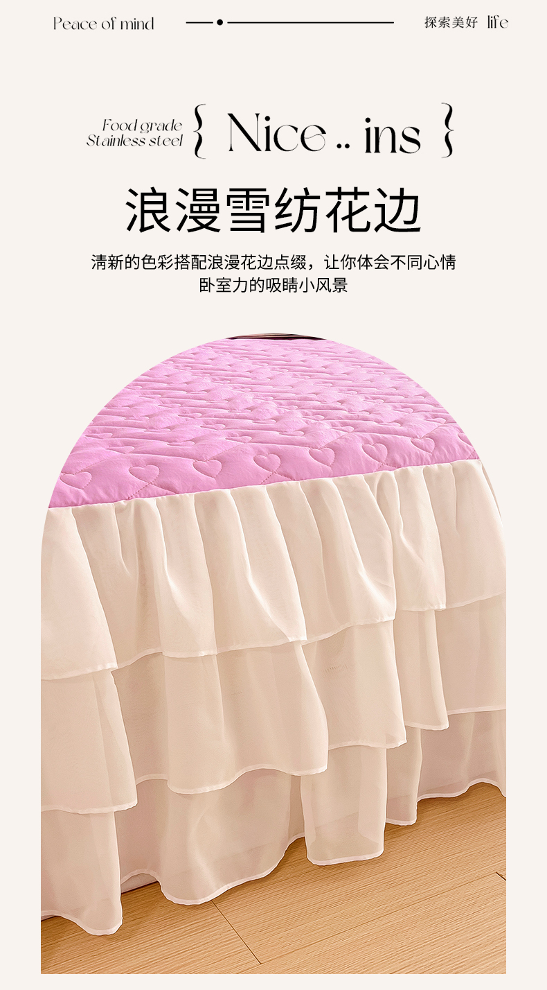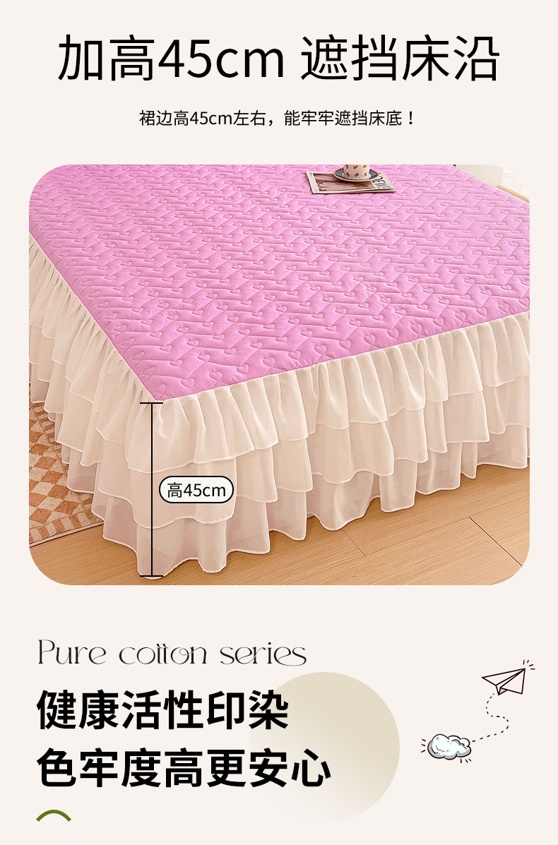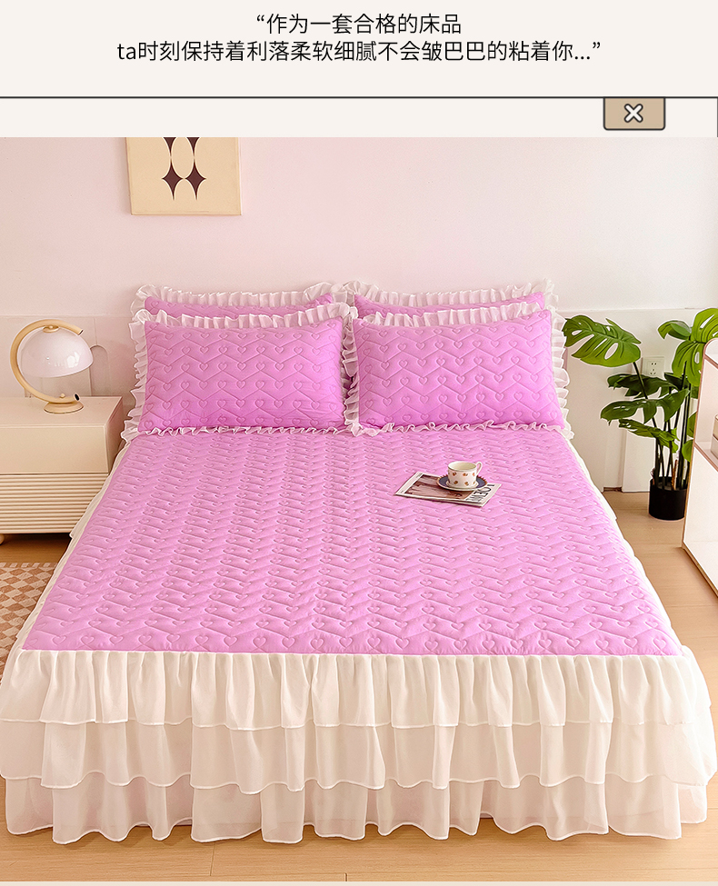 (总)屹成家纺2025新款水晶绒夹棉绗缝蕾丝床裙三件套(塞纳河畔)床裙单件起售价不低于105元,大红,豆沙,翡翠绿,粉玉,橄榄绿,蔚蓝,银灰