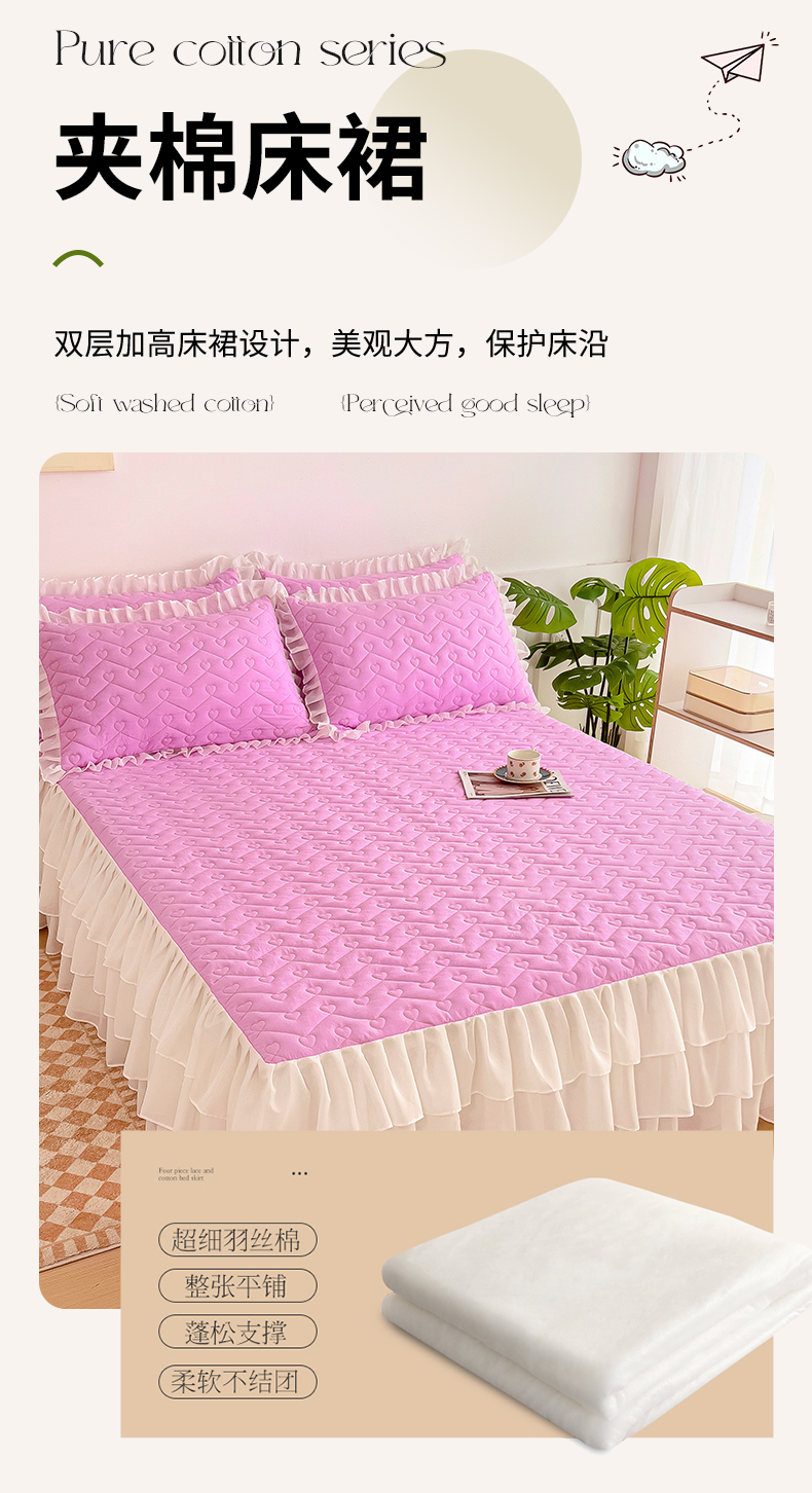 (总)屹成家纺 2024新款天竺棉夹棉床裙四件套,玳瑁紫,典雅驼,豆沙,格调蓝,经典灰,孔雀绿