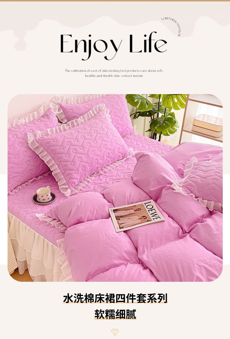 (总)屹成家纺 2025新款水洗棉床裙款四件套-倾城(四件套控价208元起),倾城-大红,倾城-豆沙,倾城-粉玉,倾城-橄榄绿,倾城-卡其,倾城-浅紫,倾城-银灰