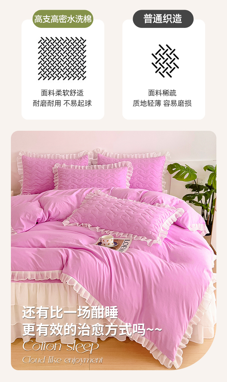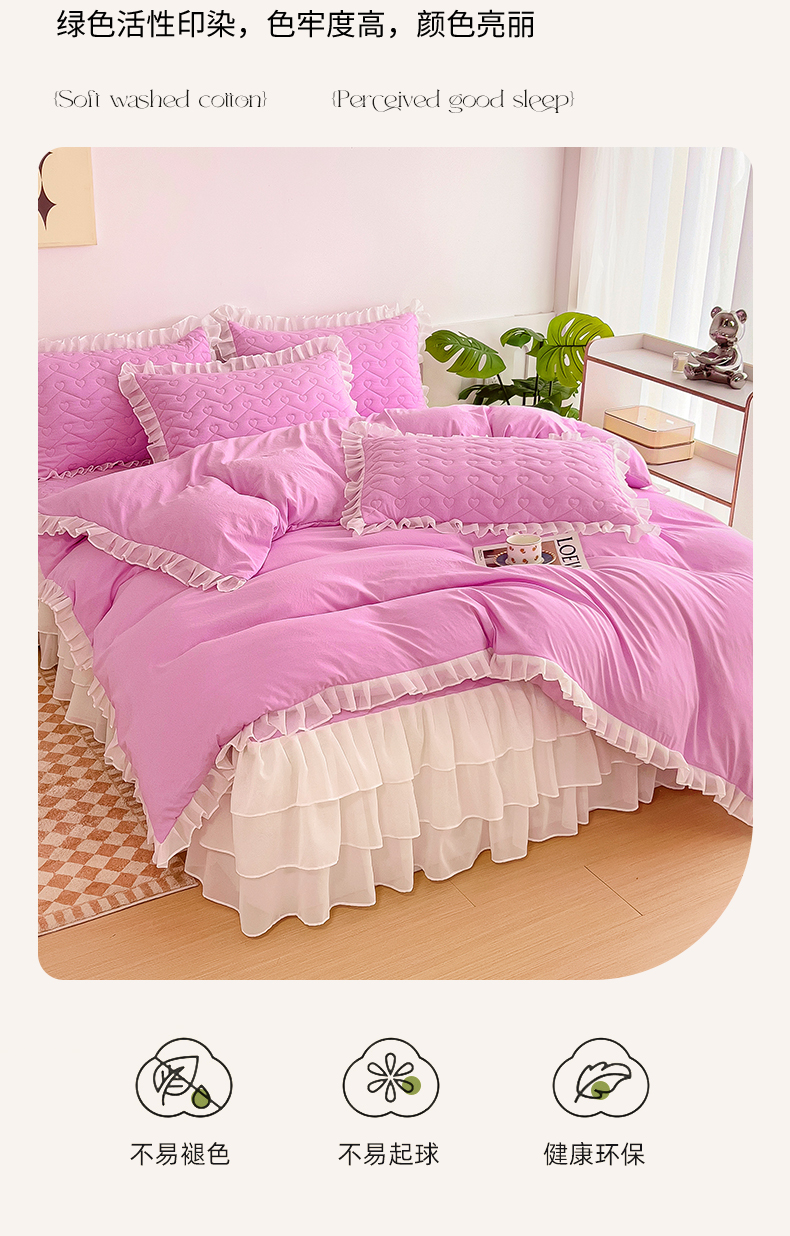 (总)屹成 2024新款水洗棉蕾丝四季款床笠床裙单品套件-床裙三件套,粉玉,豆沙,粉红,大红,橄榄绿,卡其,玫红,浅紫,水绿,天蓝,银灰