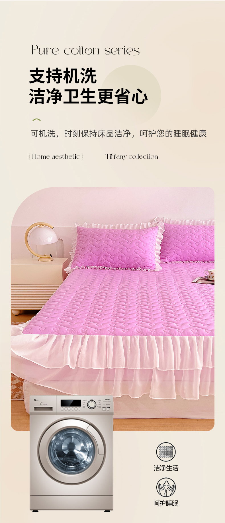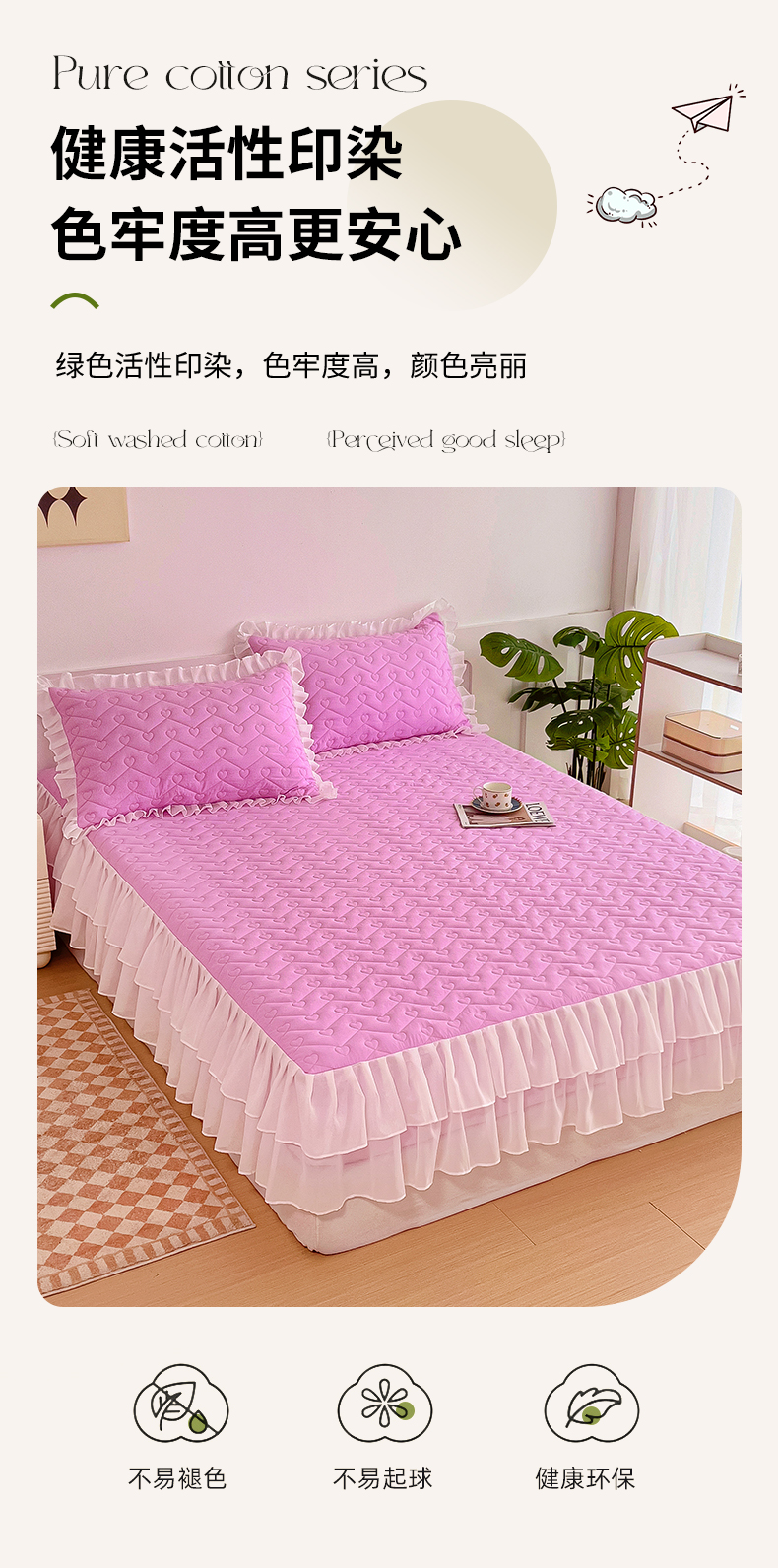 (总)屹成 2024新款水洗棉蕾丝四季款床笠床裙单品套件-床裙三件套,粉玉,豆沙,粉红,大红,橄榄绿,卡其,玫红,浅紫,水绿,天蓝,银灰