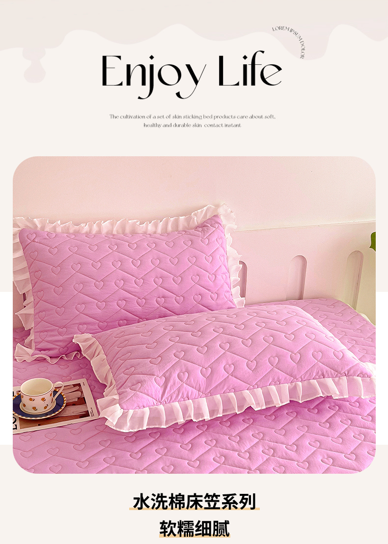 商品名称:屹成 2024新款水洗棉雪纺丽莎款单床笠 粉红