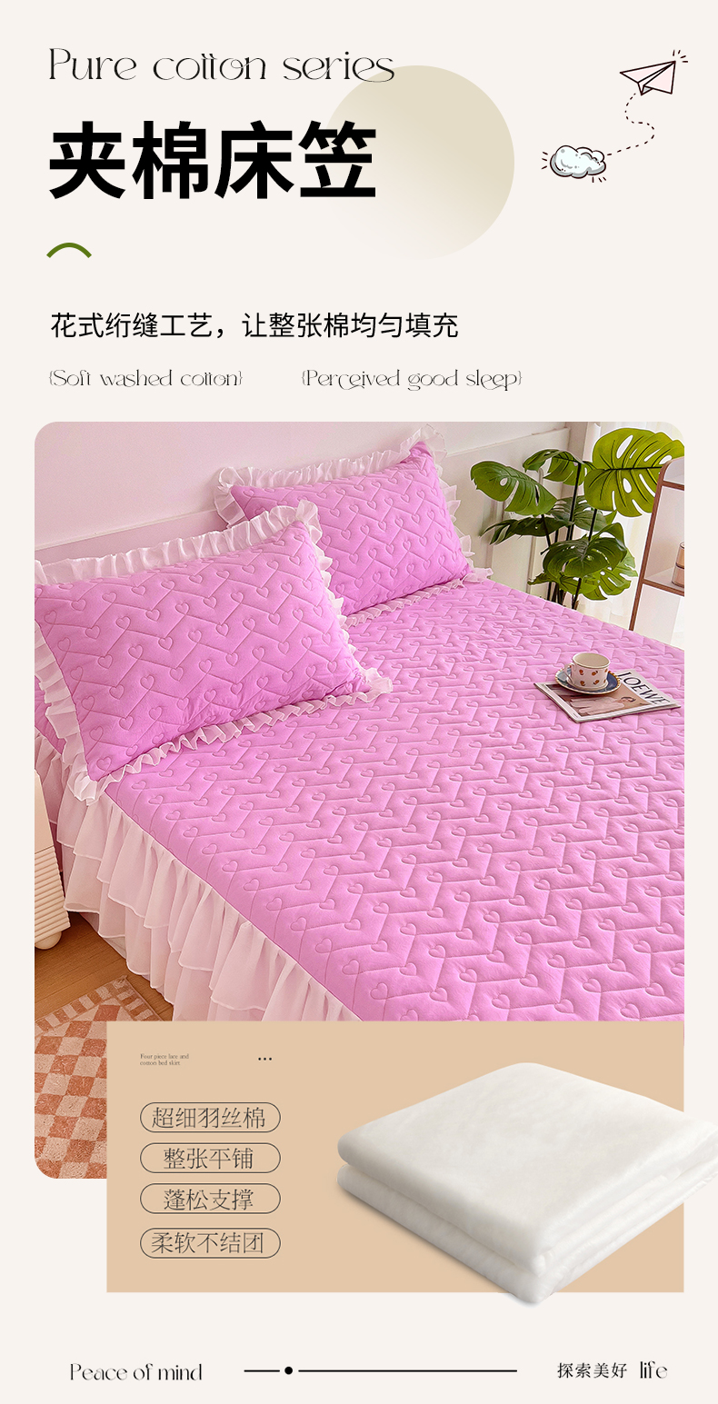 (总)屹成 2024新款高密亲肤天竺棉款夹棉床笠,豆沙色,格调蓝,孔雀绿,经典灰,典雅驼,玳瑁紫