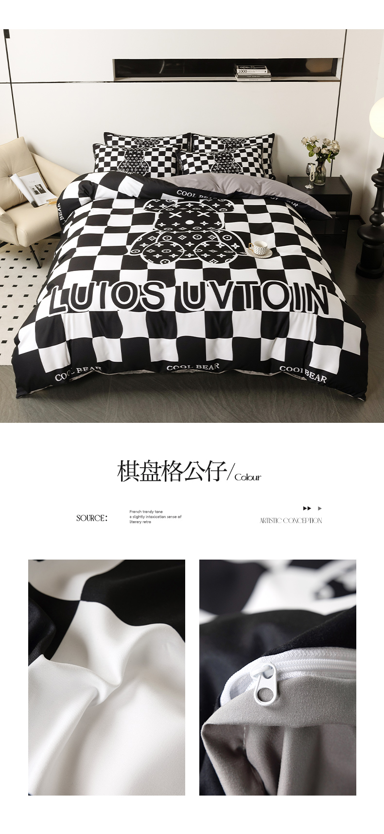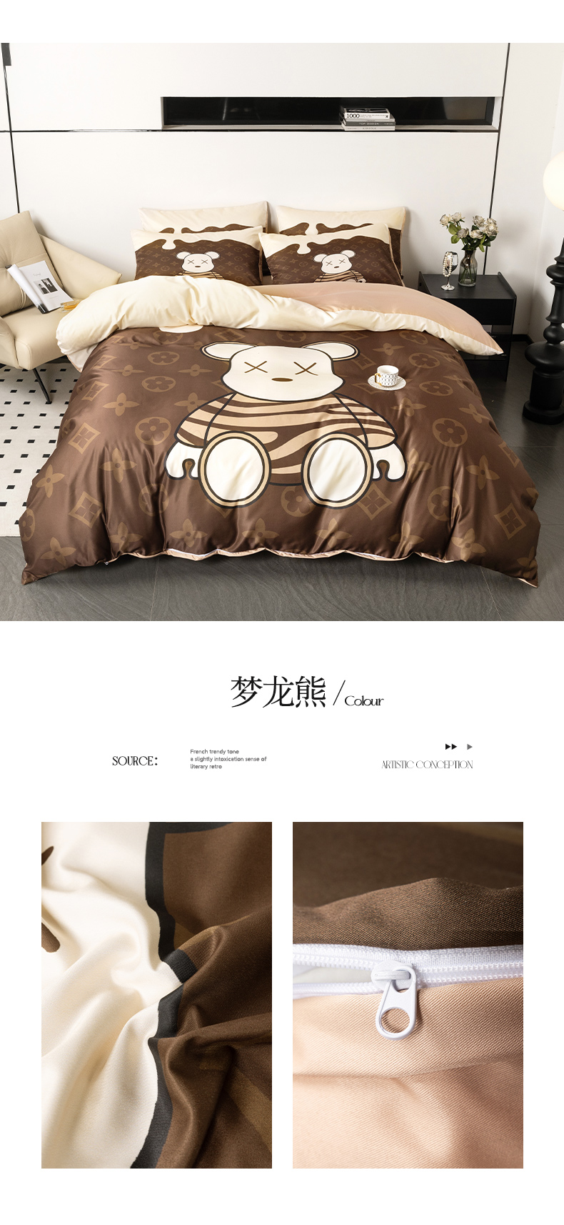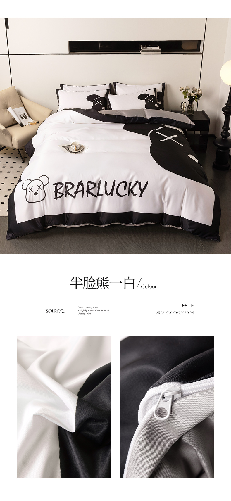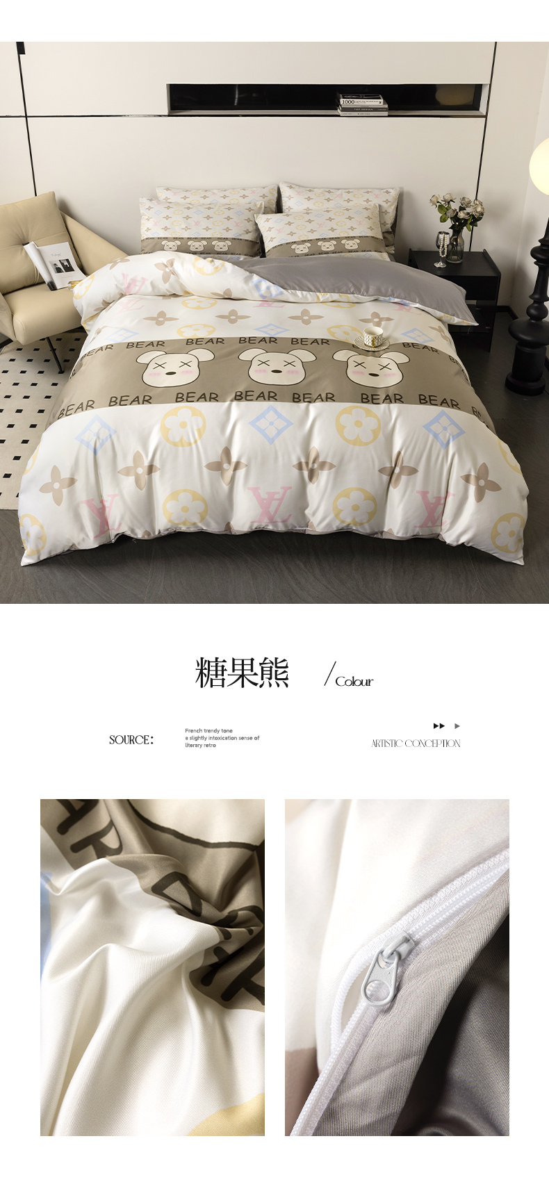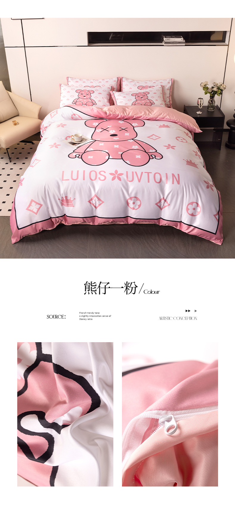 (总)摩卡(乐趣) 2024新款亲肤全棉网红轻奢四件套,H马,大H,粉红兔,黑白迪,黑白V,黑双C,咖古,咖色熊,蓝咖熊,毛绒熊,趴趴熊,七彩迪,小楂花,萌兔