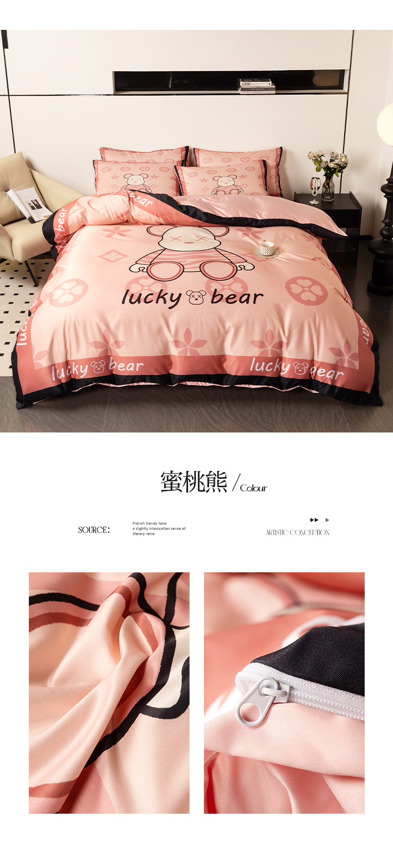 (总)摩卡(乐趣) 2025秋冬新品网红款水洗棉四季款四件套,豹纹熊-粉,豹纹熊-绿,彩虹兔,公仔蓝,梦幻粉,梦幻蓝,棋盘格公仔,太阳花粉,天使熊-粉,天使熊-咖,小熊头,熊头白,熊头橙,熊头咖,熊仔白