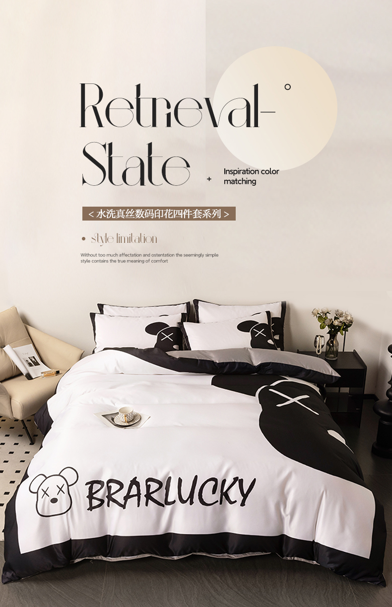 (总)2025新款水洗真丝数码印花四件套,经典兔,咔咔兔,卡夫兔,路易兔,萌萌兔,棋盘兔,CC兔