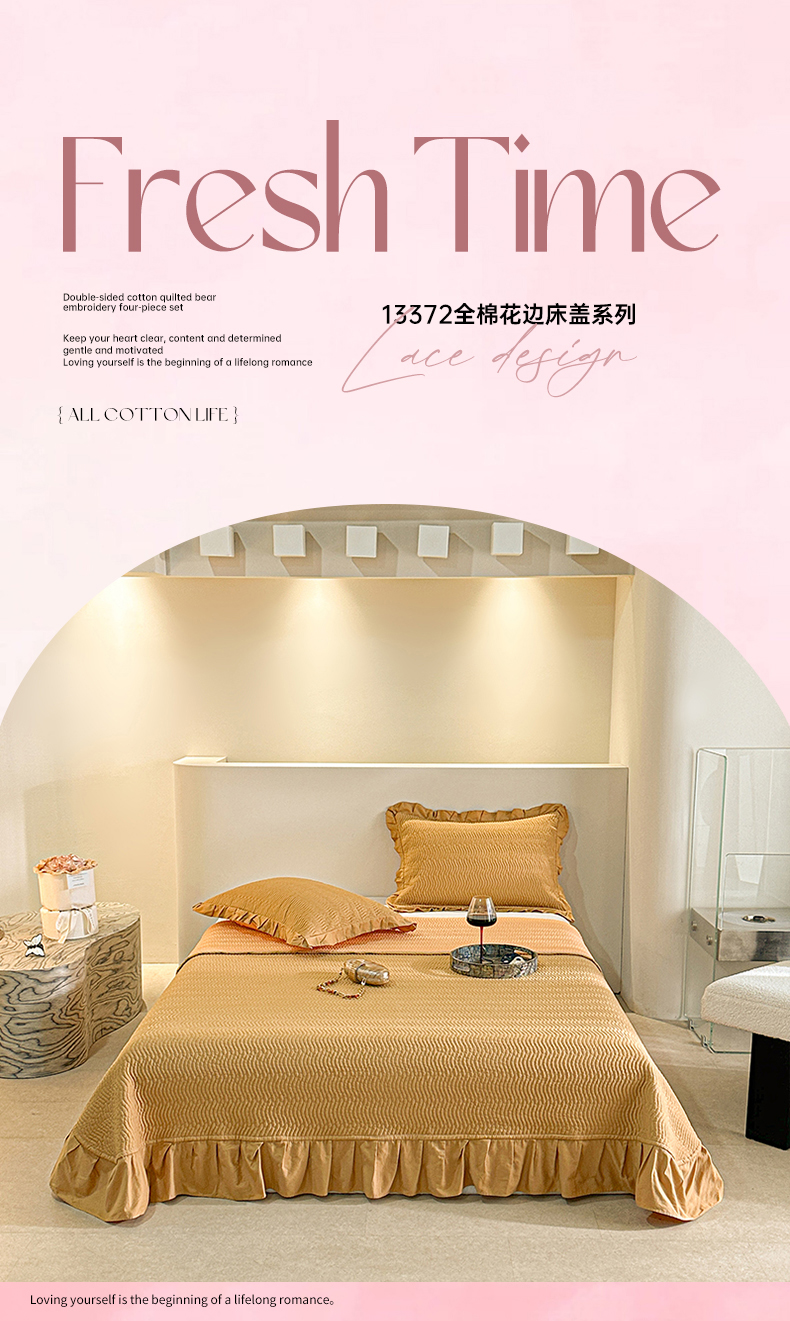 源舜家纺 2025新款13372全棉花边床盖系列 橘色