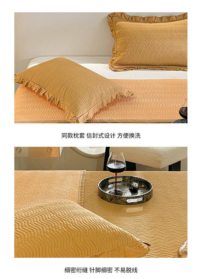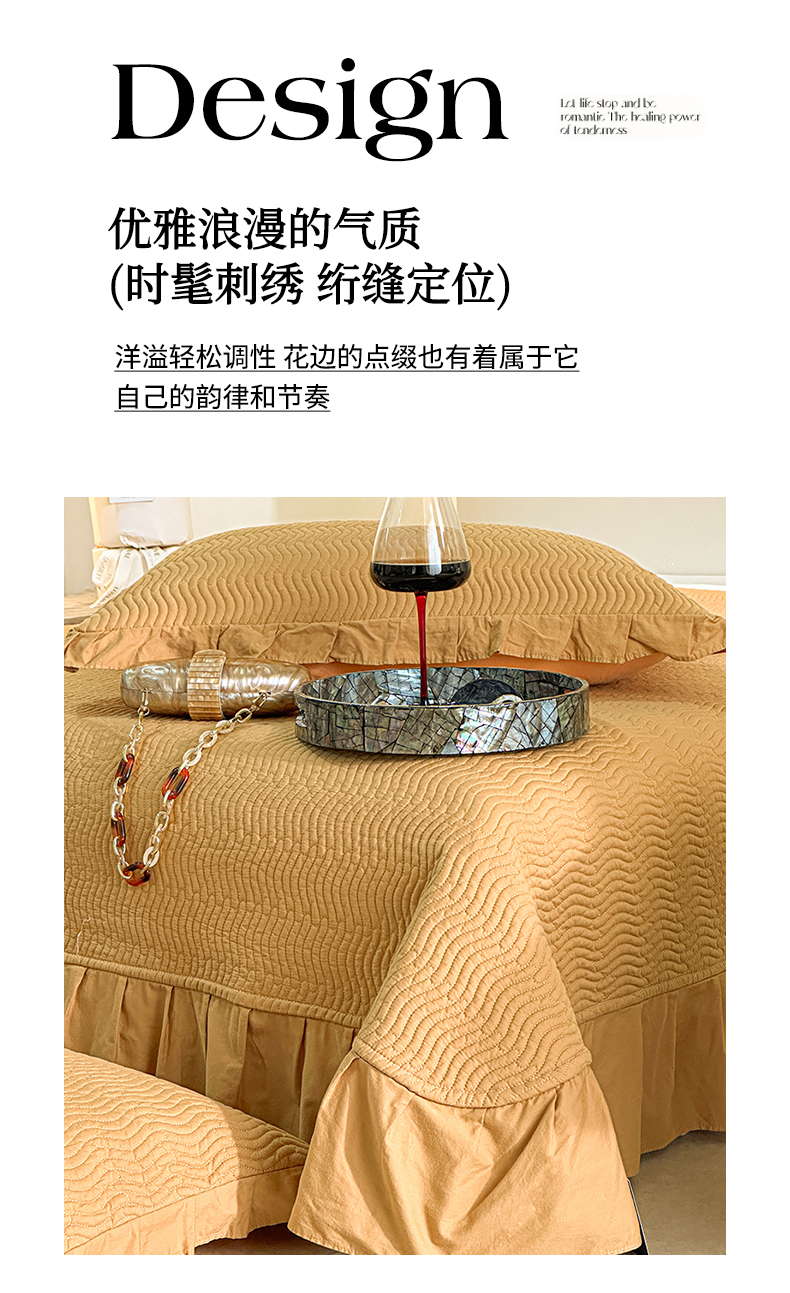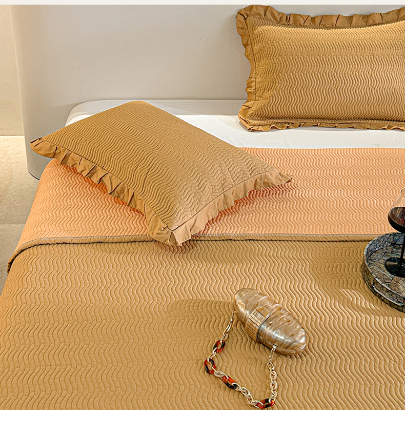 (总)源舜家纺 2025新款色织棉简约韩系花边床盖三件套,简约灰,简约粉,简约绿,简约驼,简约蓝