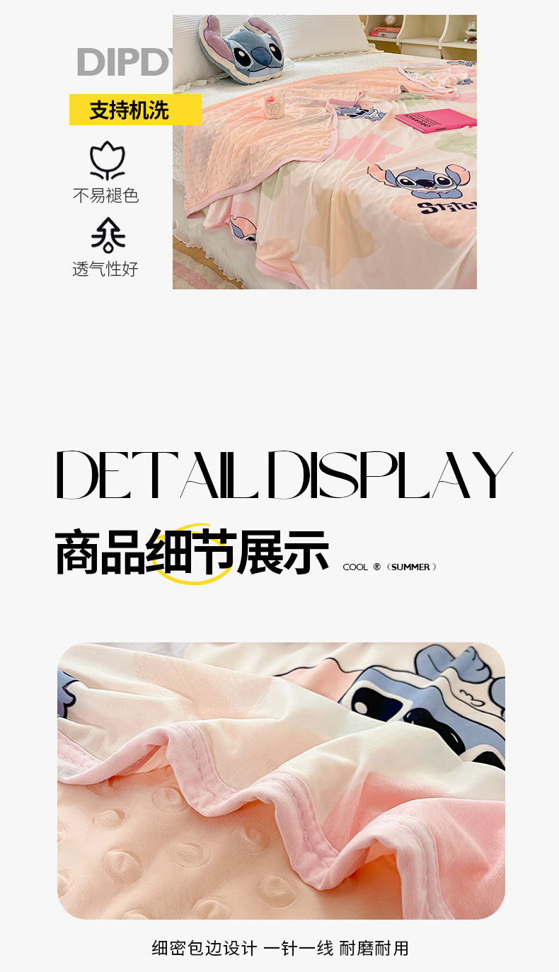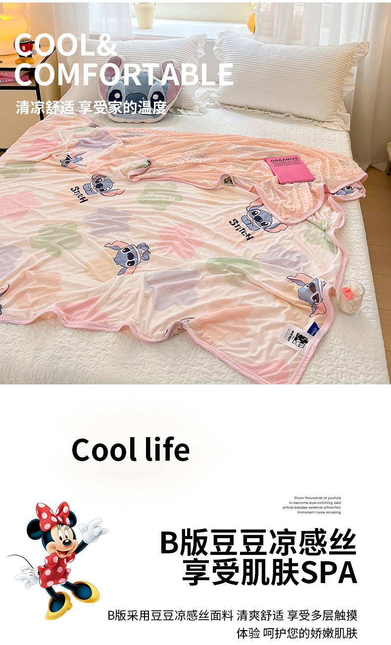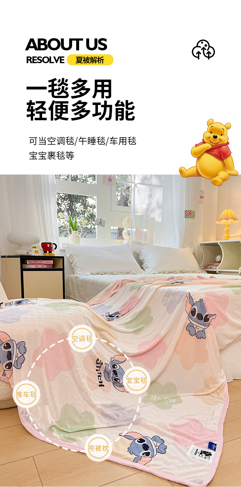 大彩家居 2024新款A类迪士尼小凉皮豆豆盖毯 盖毯-花花史迪仔