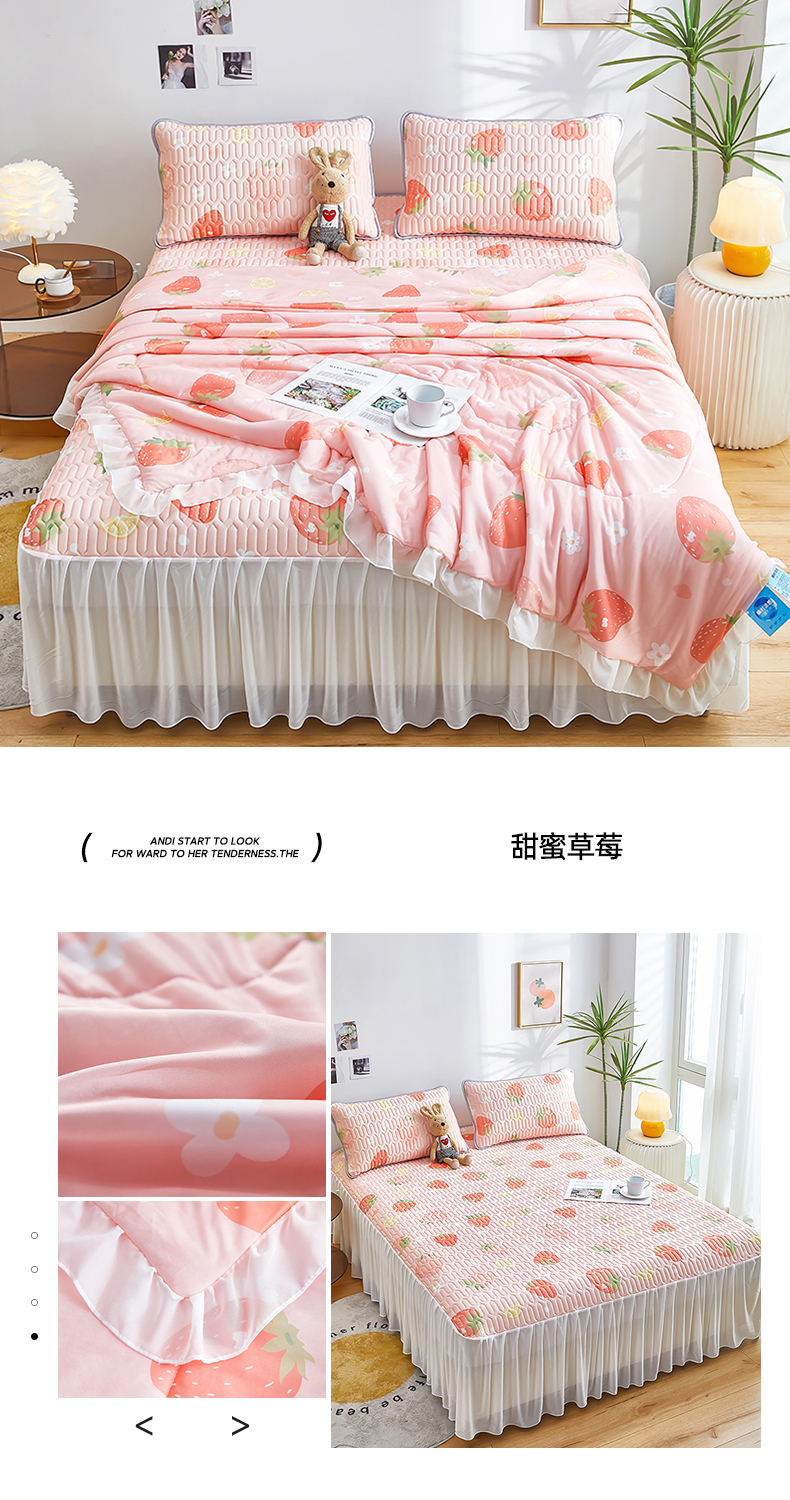 当前位置: 91家纺网 > 商品网购 > 床上用品 > 凉席 > 其他凉席 > 爱上家居 2024新款印花凉席床裙床单款夏被-床裙款 甜蜜草莓