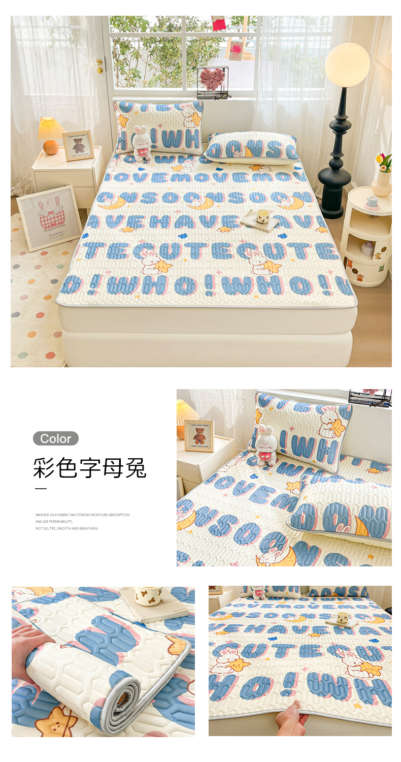 商品名称:佰亿莱2024新款小清新印花乳胶凉席 彩色字母兔