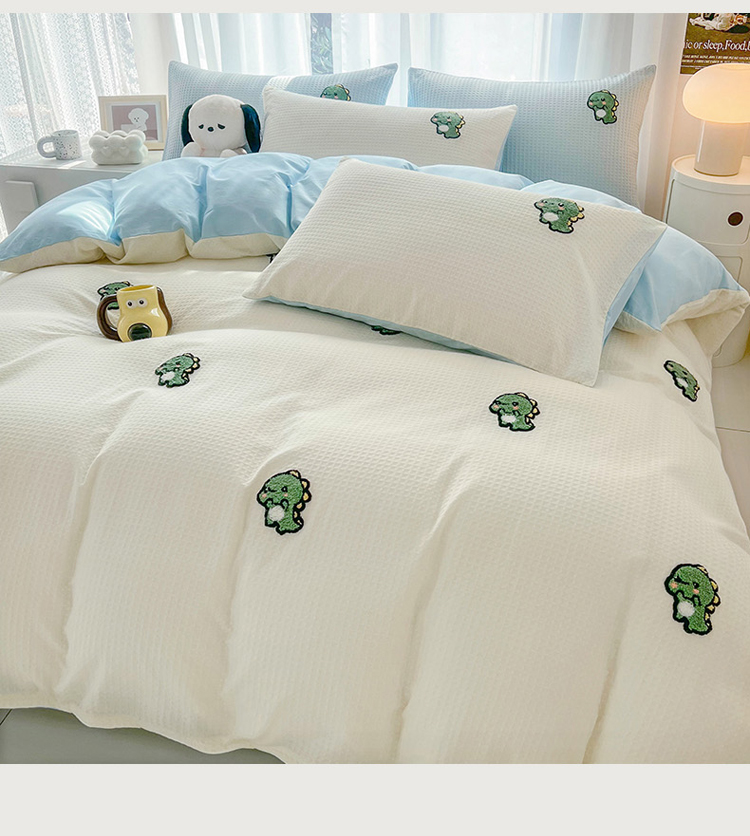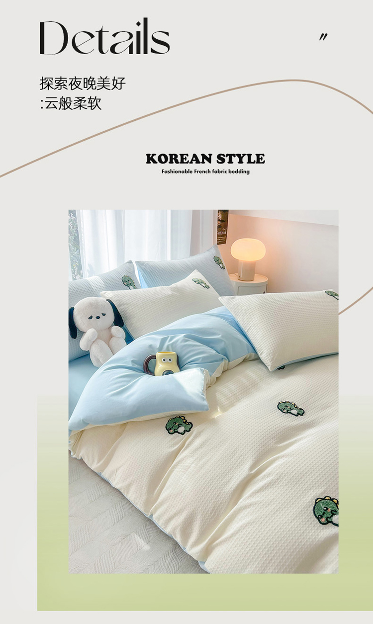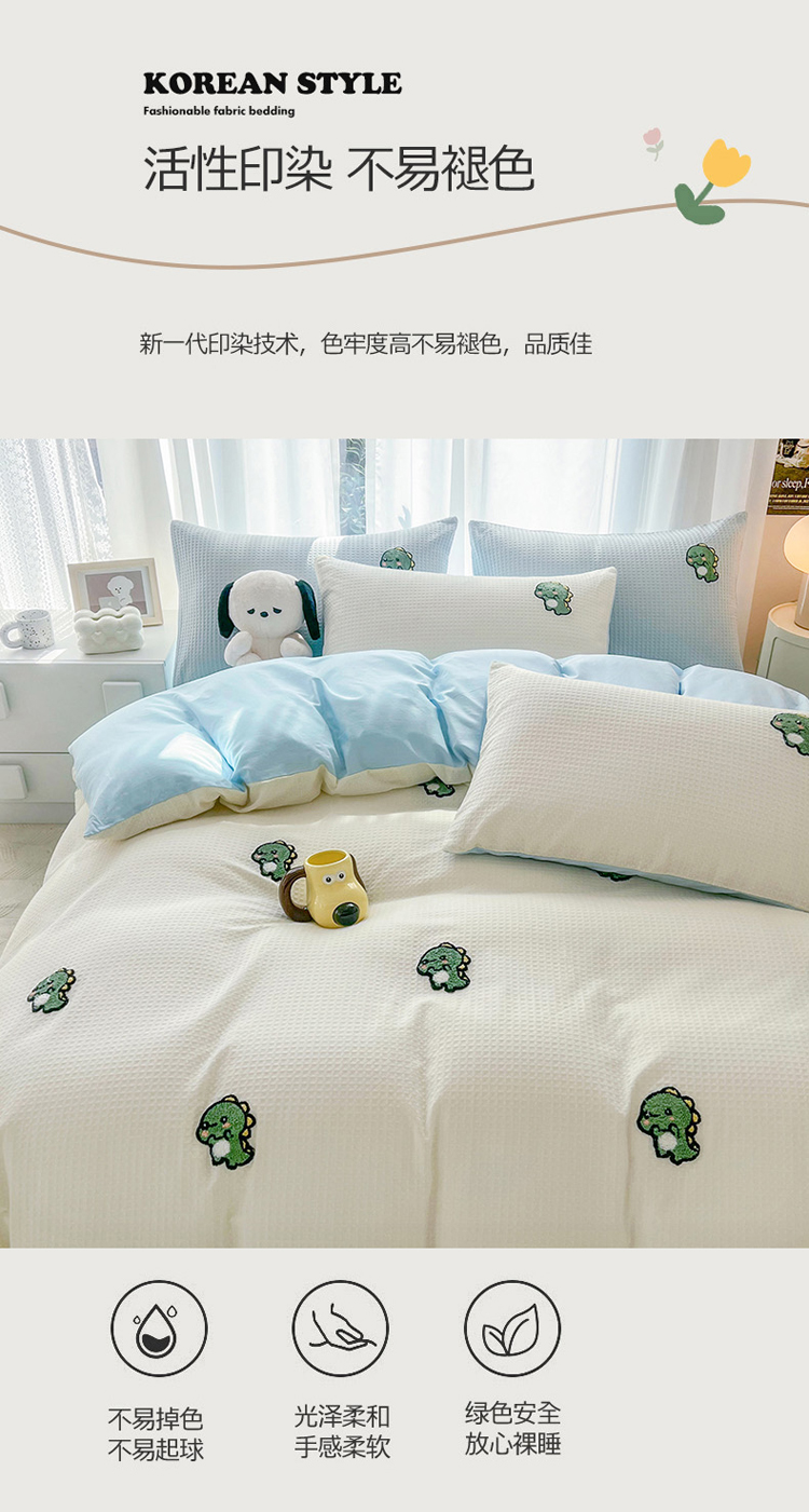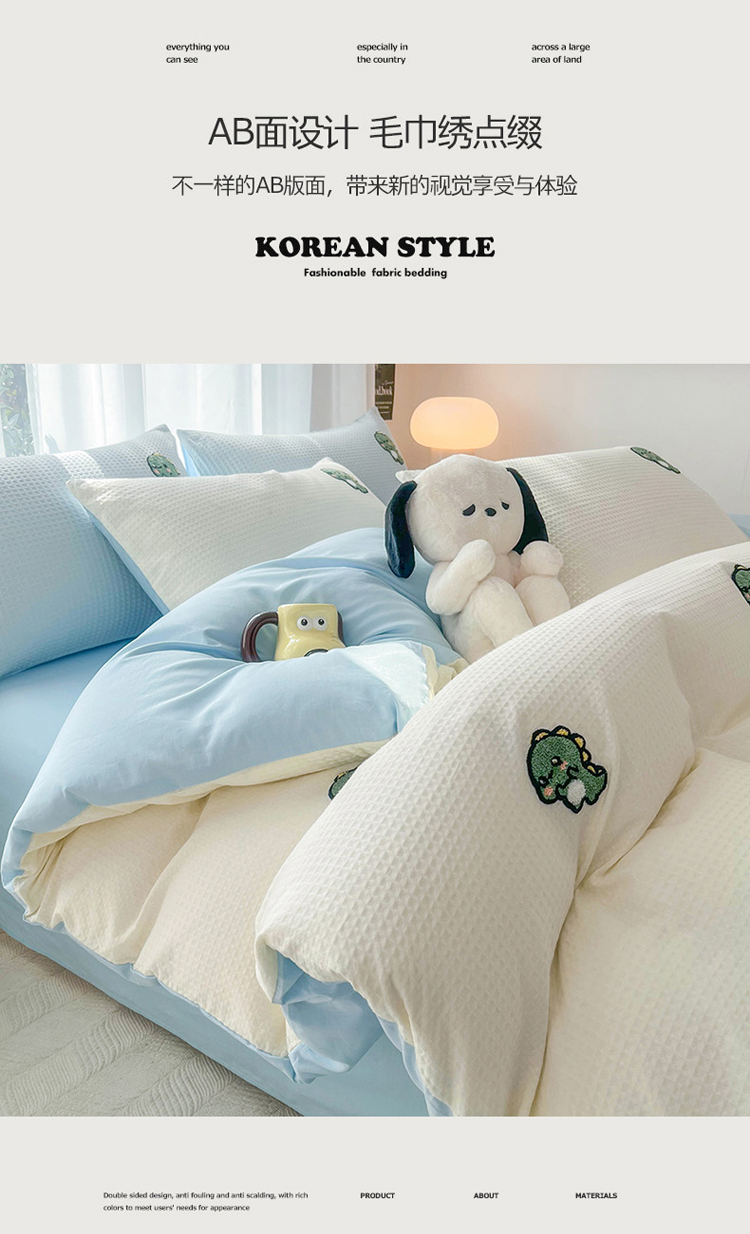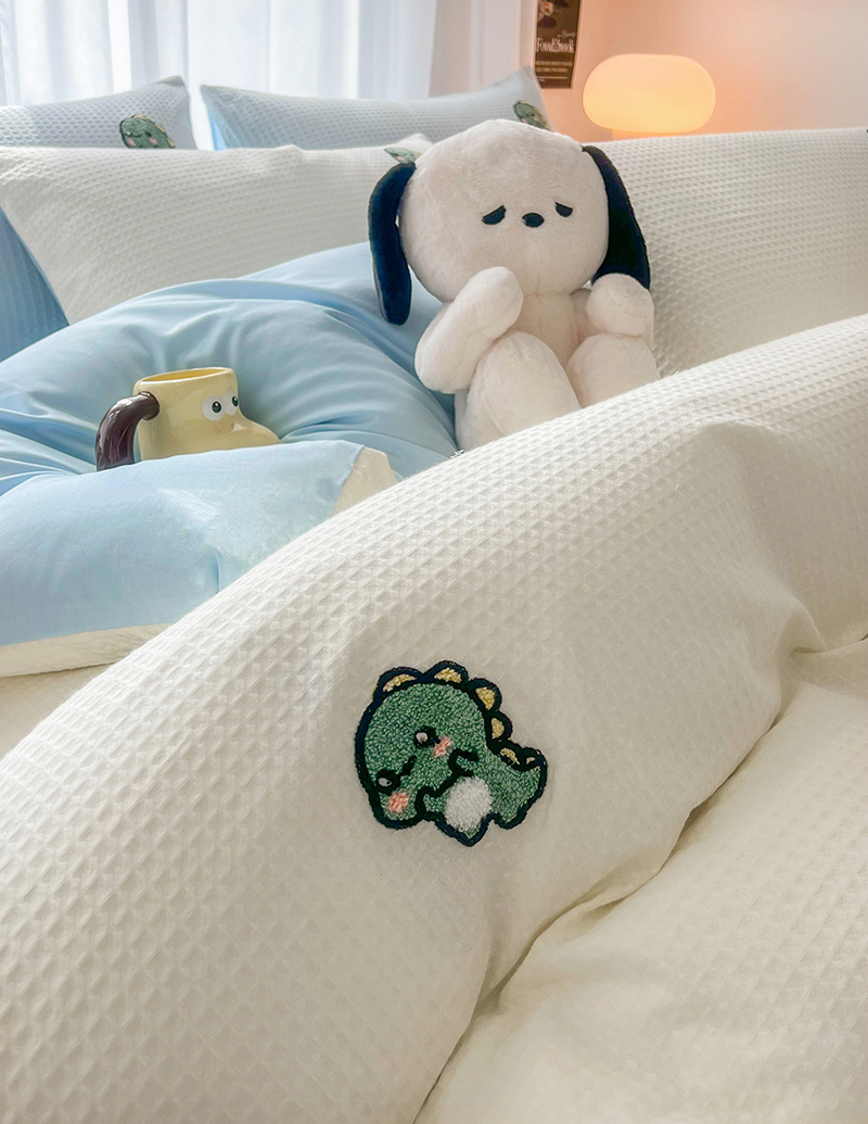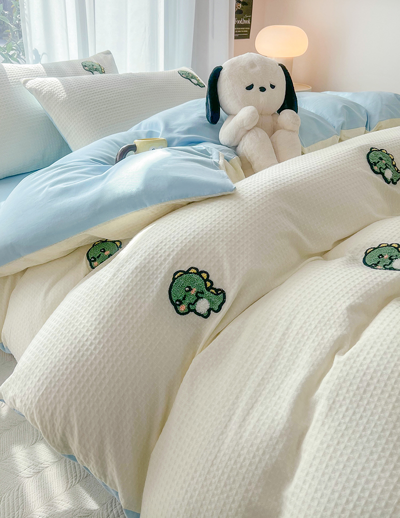 当前位置: 91家纺网 > 商品网购 > 床品套件 > 四件套 > 毛巾绣四件套 > 慕尚 2025新款全棉华夫格毛巾绣四件套 恐龙之王白蓝