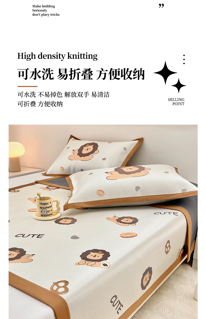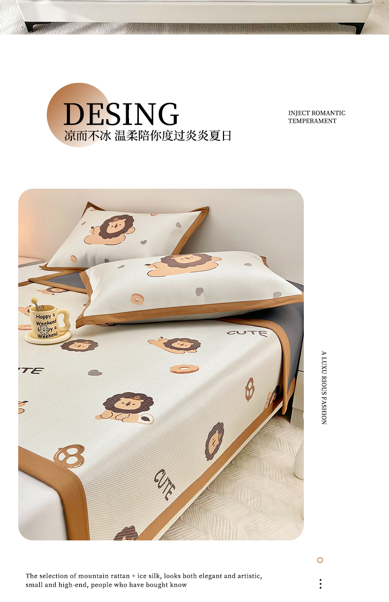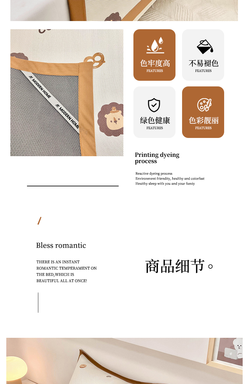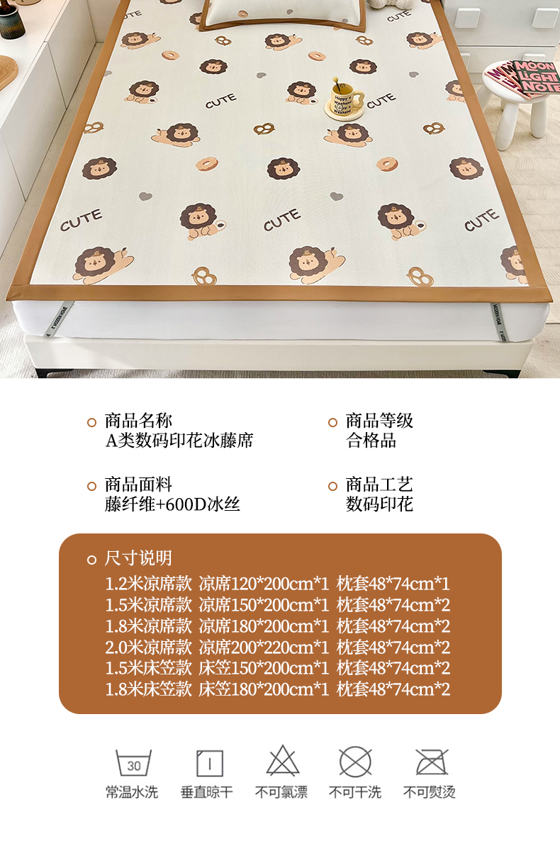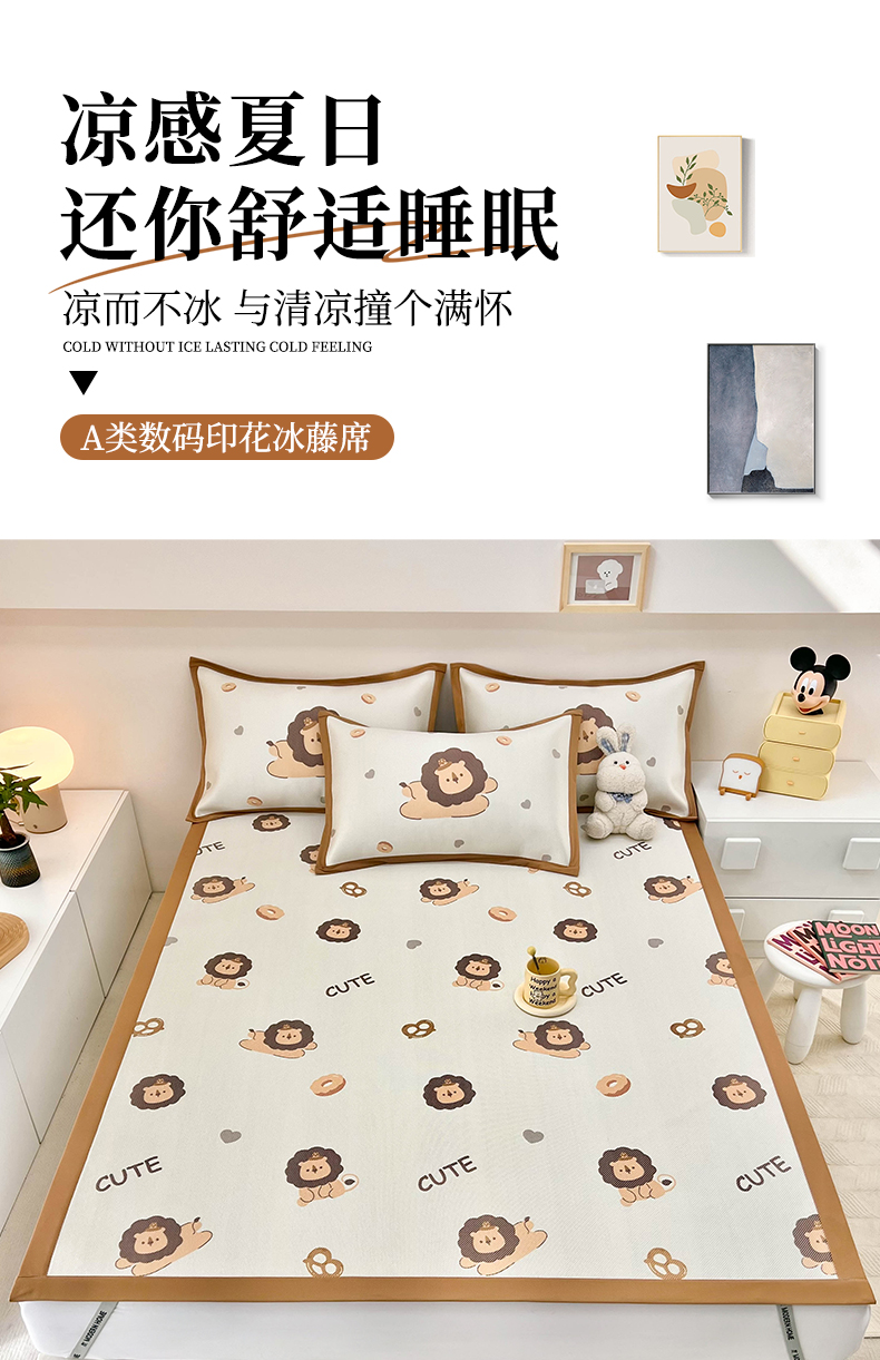 当前位置: 91家纺网 > 商品网购 > 床上用品 > 凉席 > 其他凉席 > 全季家居 2024新款5A抗菌小清新数码印花冰藤席 床席款-小狮子