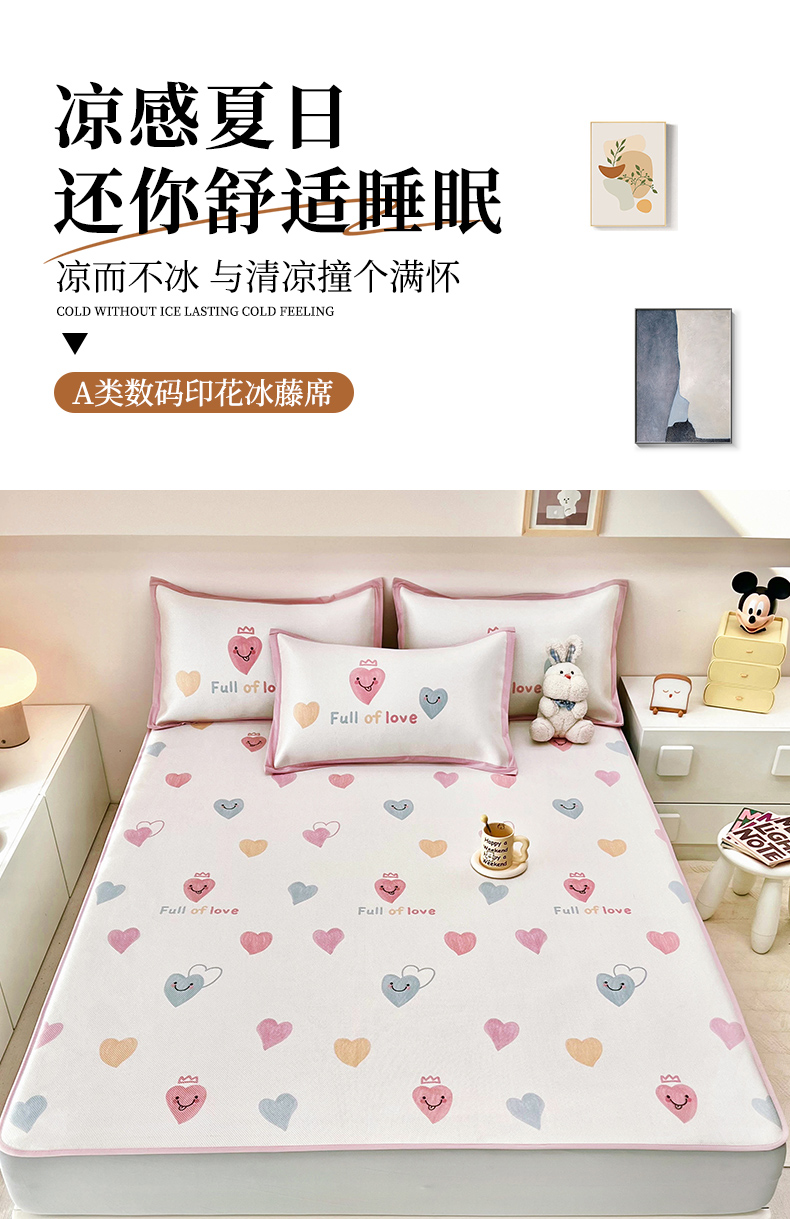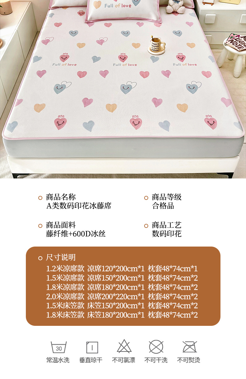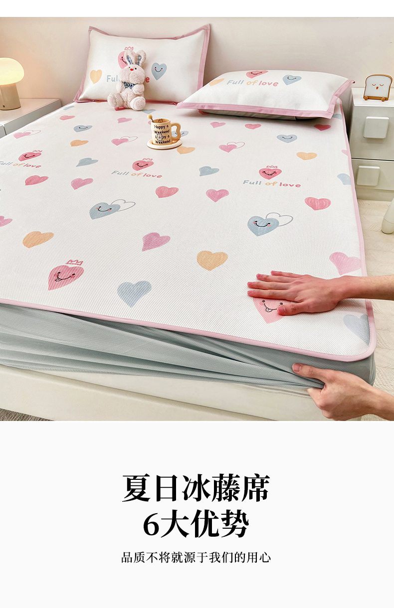 当前位置: 91家纺网 > 商品网购 > 床上用品 > 凉席 > 其他凉席 > 全季家居 2024新款5A抗菌小清新数码印花冰藤席 床笠款-心语