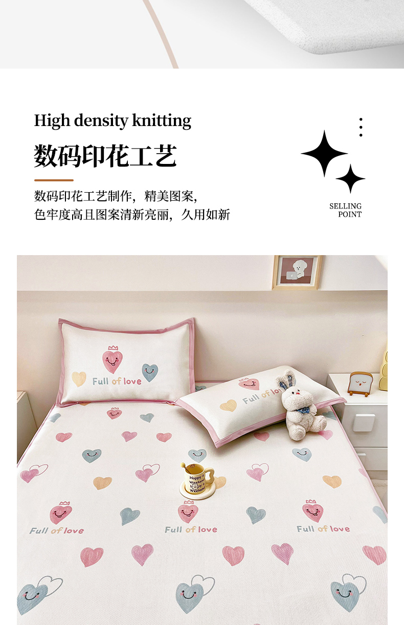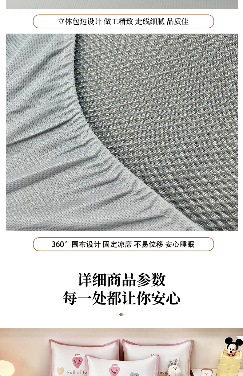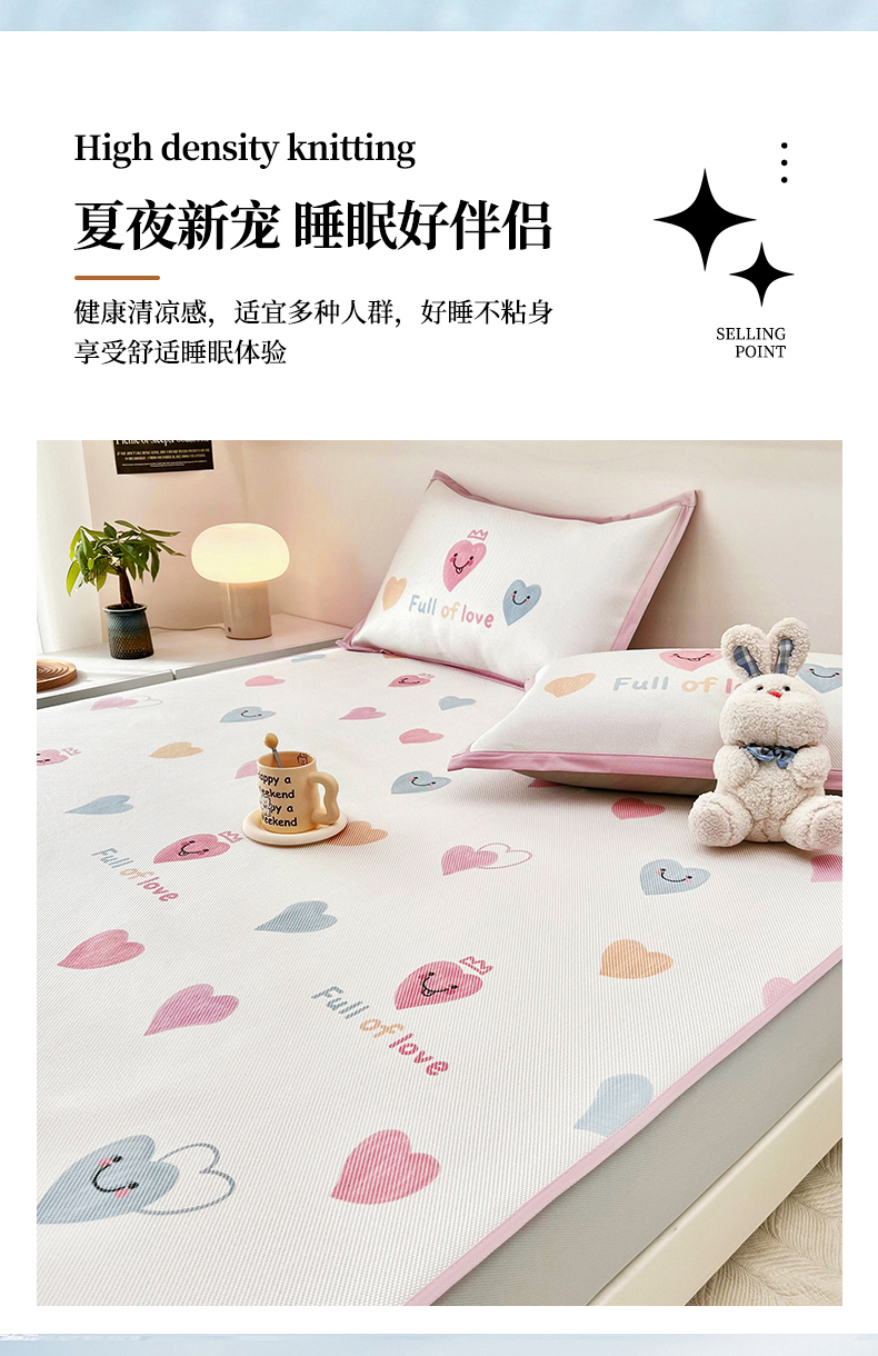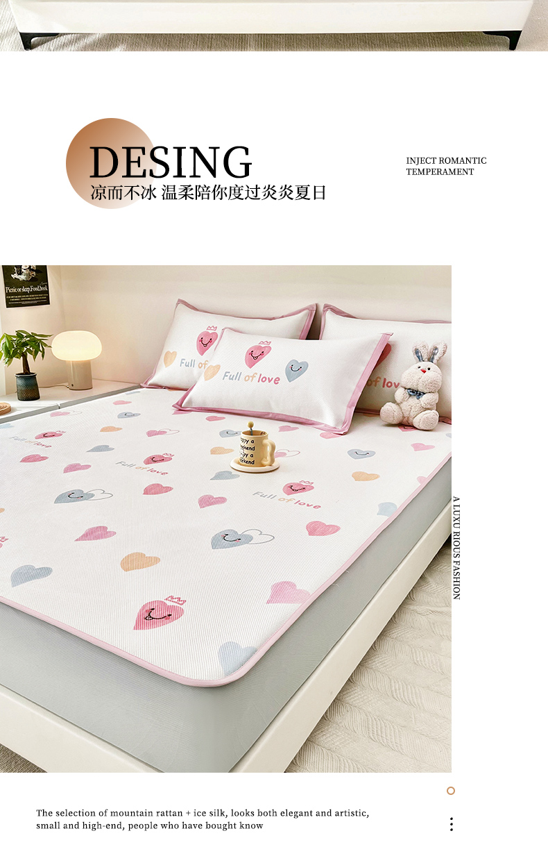 当前位置: 91家纺网 > 商品网购 > 床上用品 > 凉席 > 其他凉席 > 全季家居 2024新款5A抗菌小清新数码印花冰藤席 床笠款-心语