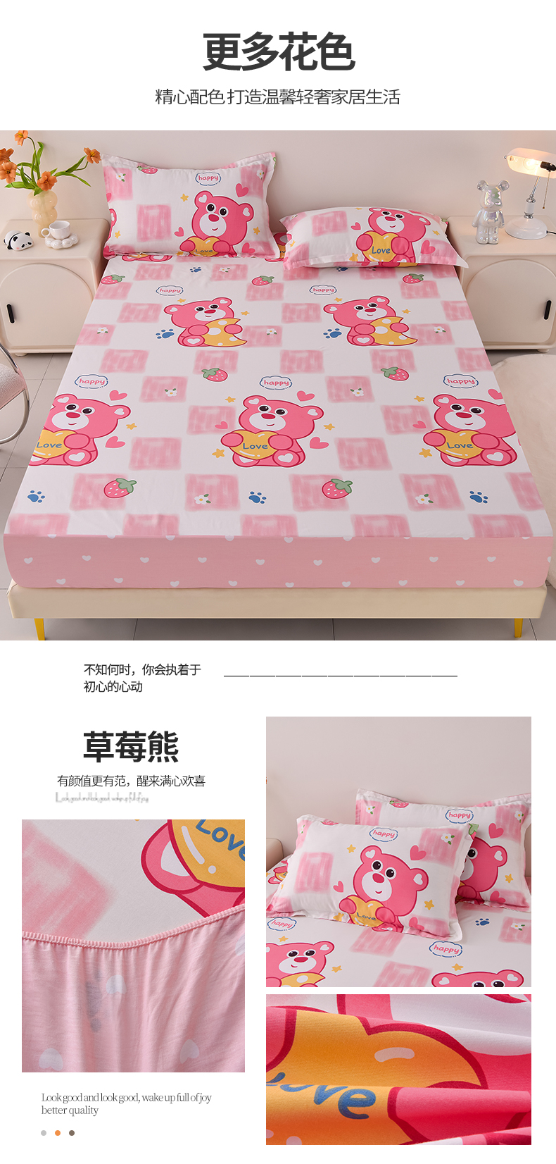 (总)床笠人家 2025新款A棉B绒-双面防水护理垫儿童床,草莓熊,蛋糕兔,恐龙告白,快乐宇航员,莉莉兔,趣味乐园,唯一的爱,星空之恋,幸运草莓