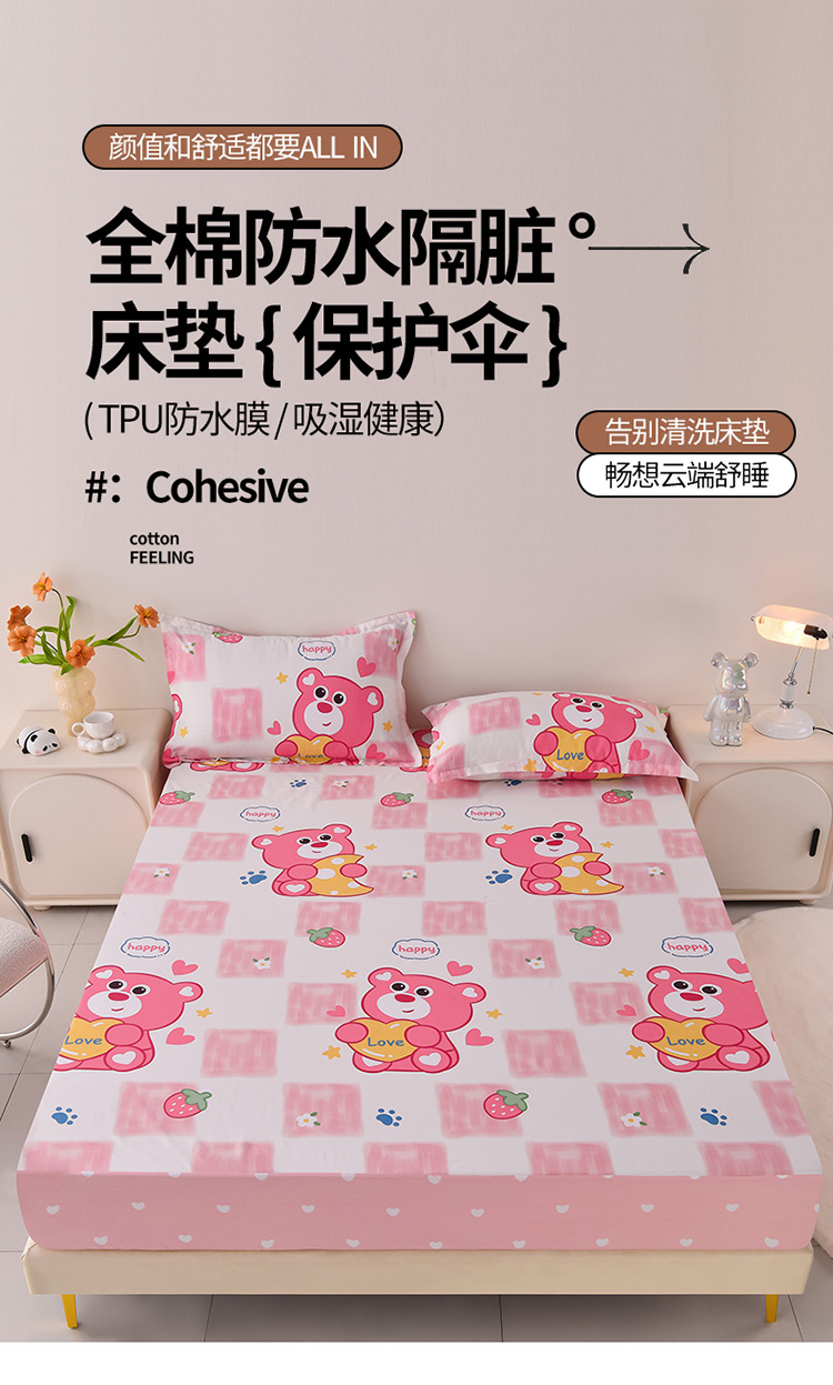 (总)床笠人家 2025新款A棉B绒-双面防水护理垫大床款,草莓熊,蛋糕兔,恐龙告白,快乐宇航员,莉莉兔,趣味乐园,唯一的爱,星空之恋,幸运草莓