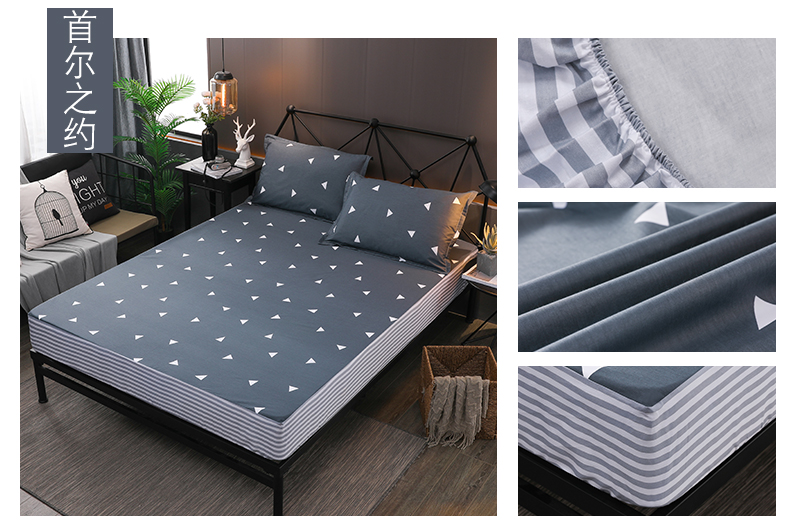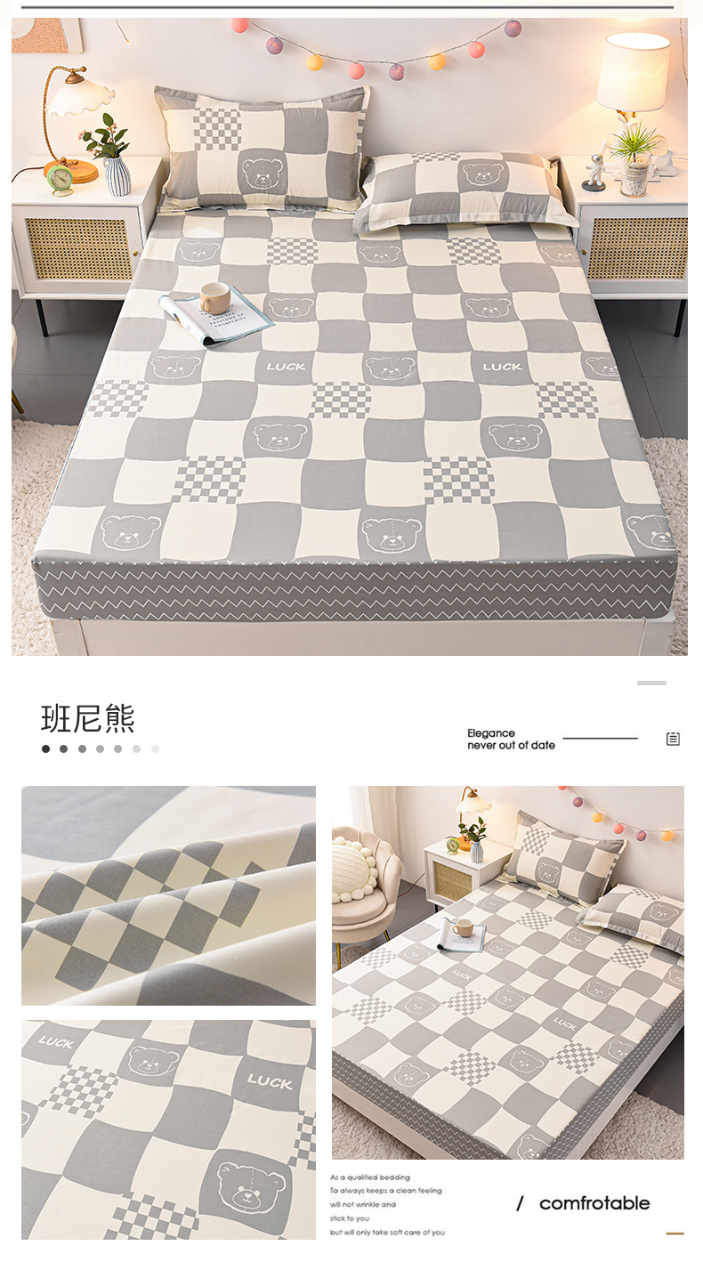 (总)床笠人家 2023新款全棉水洗棉防水床笠,巴洛克-灰,白小格,灰小格,蓝格,绿小格,米小格,雪山白,玉格,珍珠灰