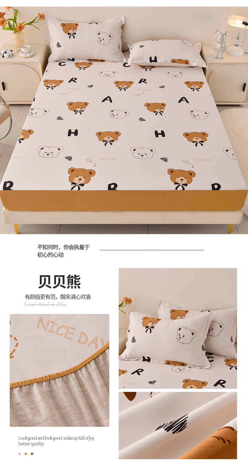 床笠人家 2025新款全棉夹棉防水床垫 酷乐熊,酷乐熊