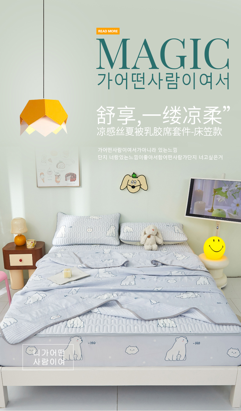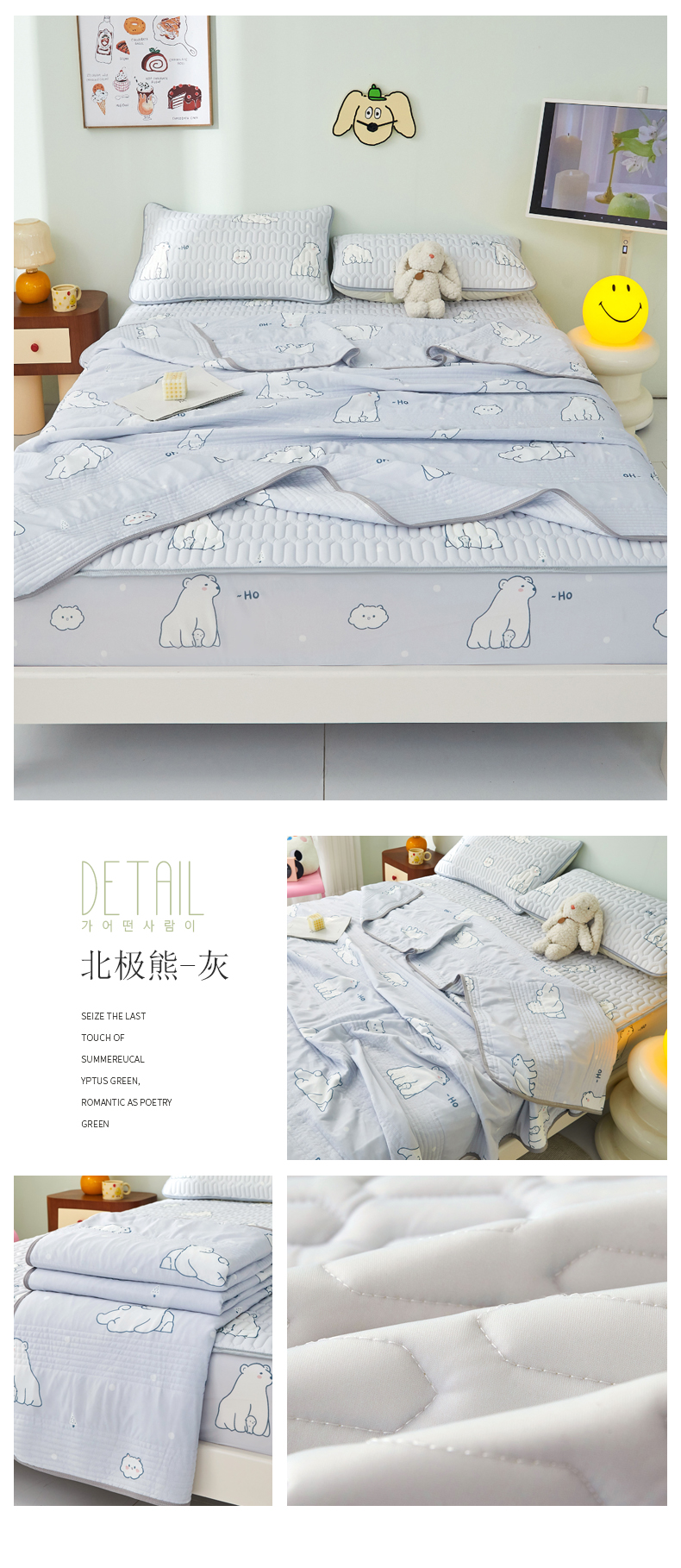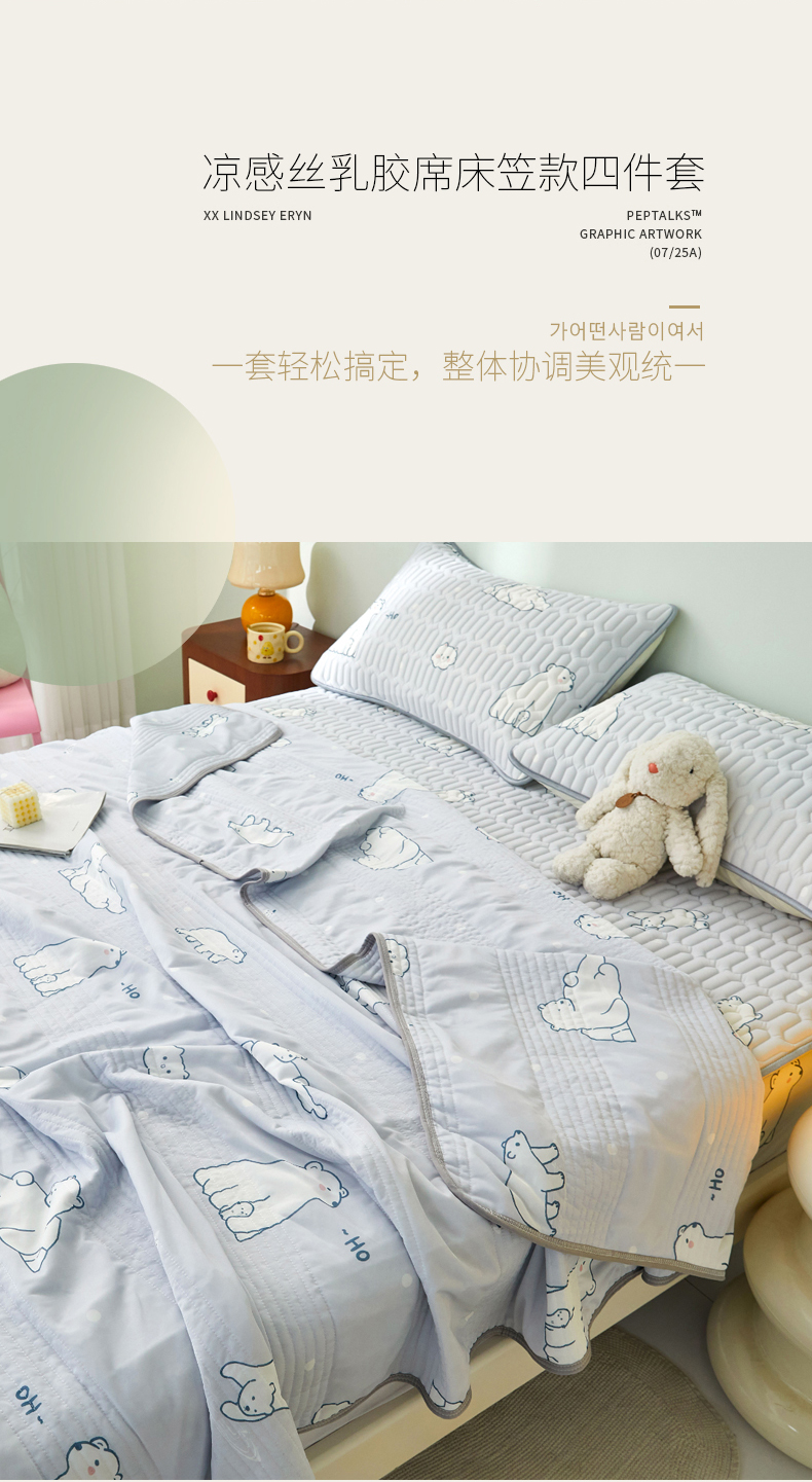 商品名称:LIFE.丽芙 2024年新品0.4乳胶凉席加厚床笠款三件套+凉感丝夏被可组合四件套-图片一 北极熊-灰