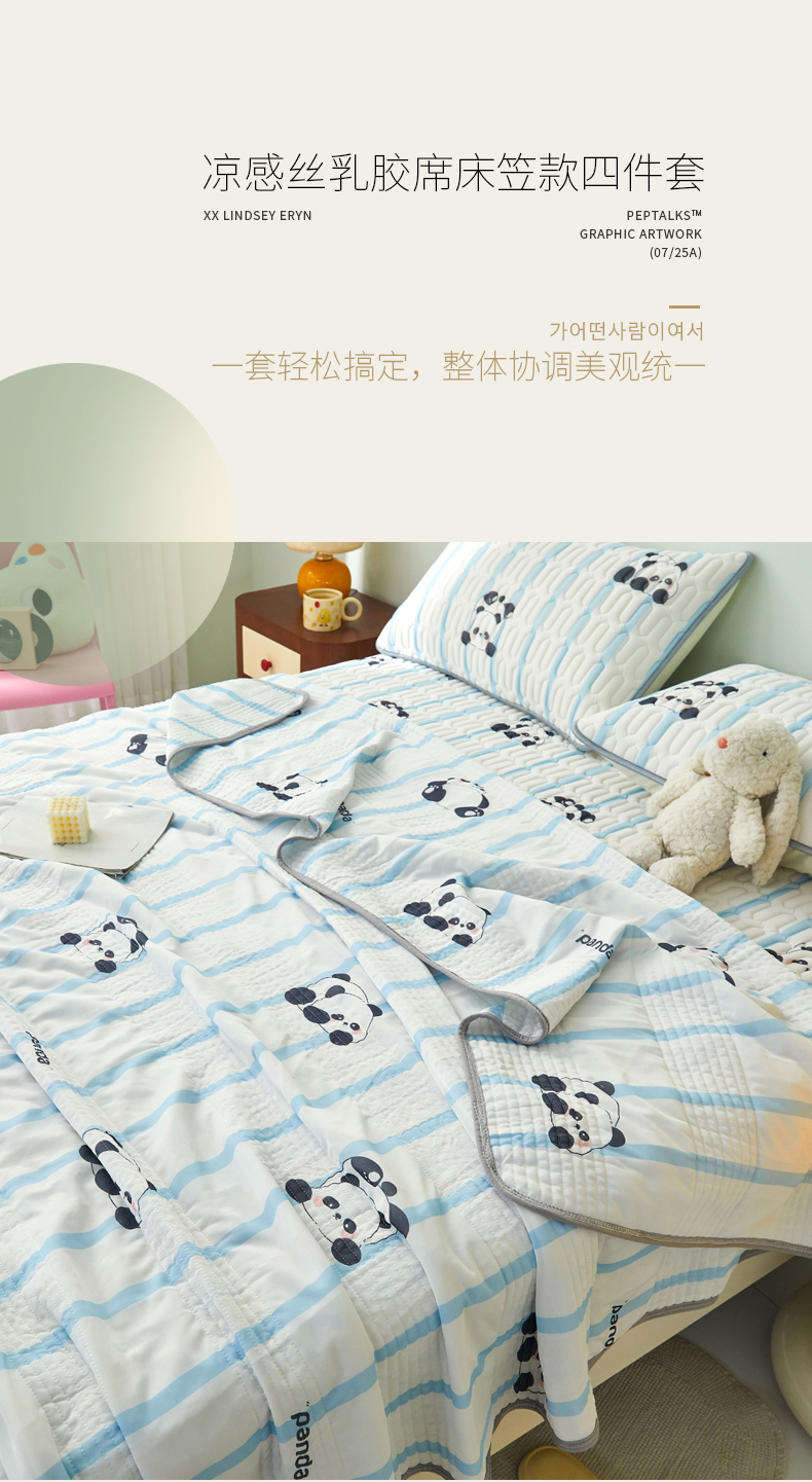 商品名称:LIFE.丽芙 2024年新品0.4乳胶凉席加厚床笠款三件套+凉感丝夏被可组合四件套-图片一 小熊猫
