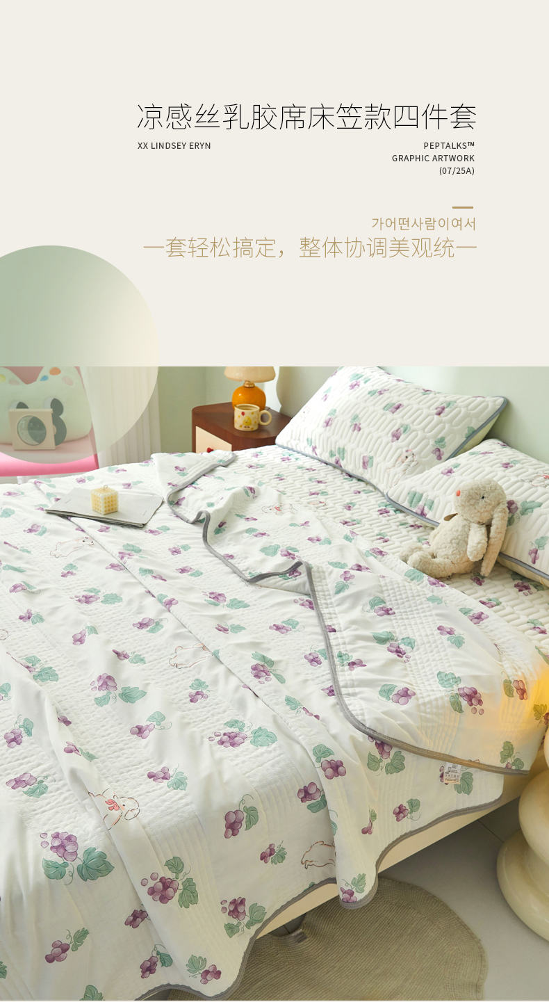 商品名称:LIFE.丽芙 2024年新品0.4乳胶凉席加厚床笠款三件套+凉感丝夏被可组合四件套-图片一 葡萄园