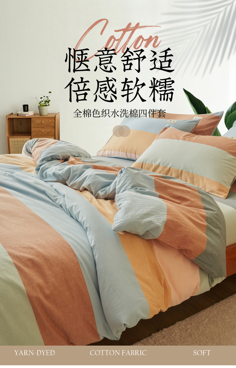 当前位置: 91家纺网 > 商品网购 > 床品套件 > 四件套 > 水洗棉四件套 > 21度C 2024新款全棉水洗棉四件套 七彩条