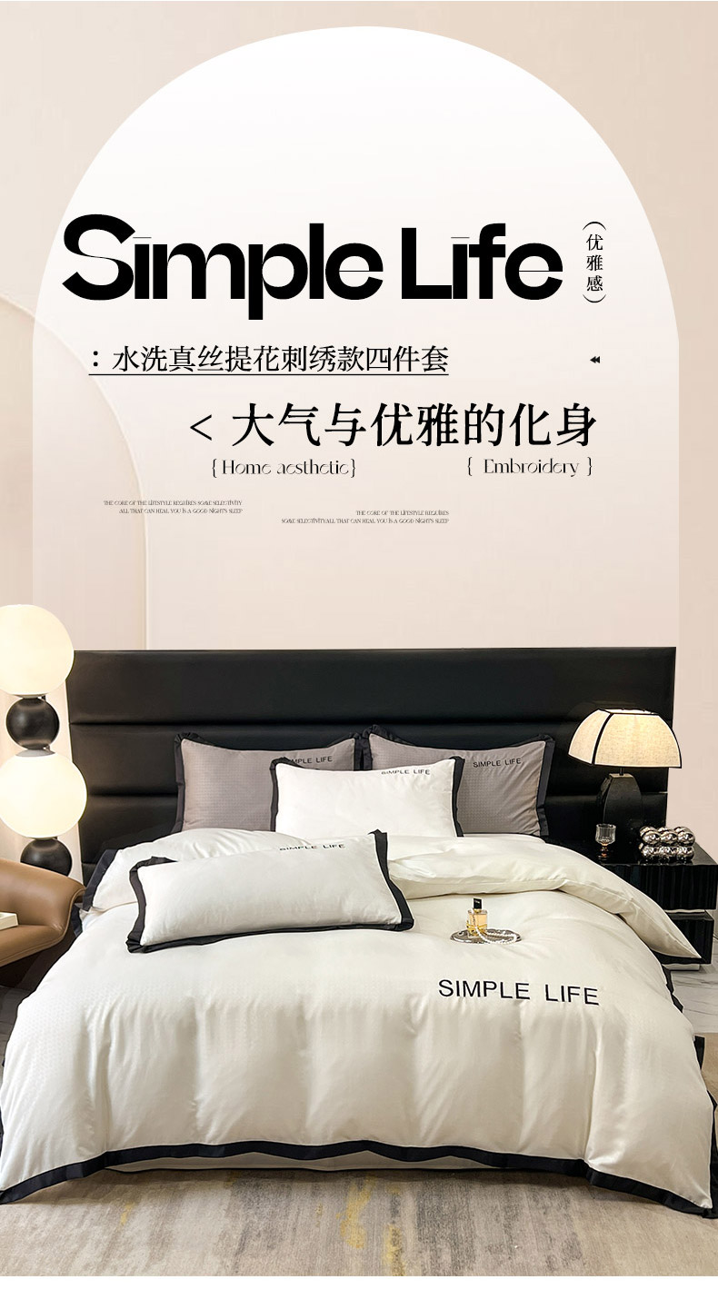 艾米家居 2025水洗真丝提花系列简约生活 简约生活珍珠白