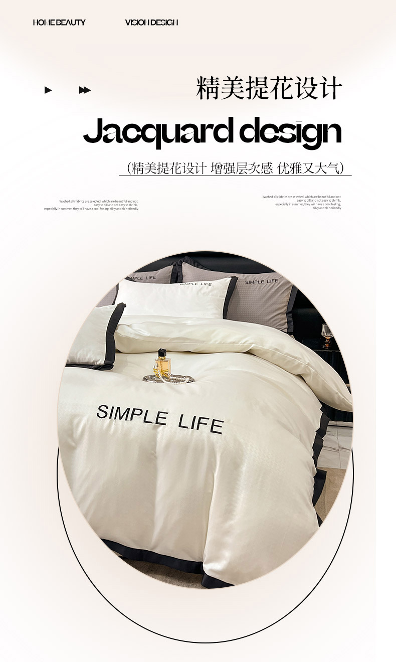 (总)艾米 2025新款春夏水洗真丝四件套-星月,薄荷绿,豆沙,鹅黄,粉玉,奶白,天蓝