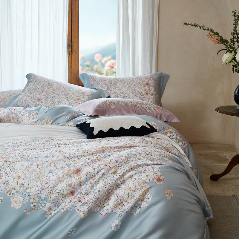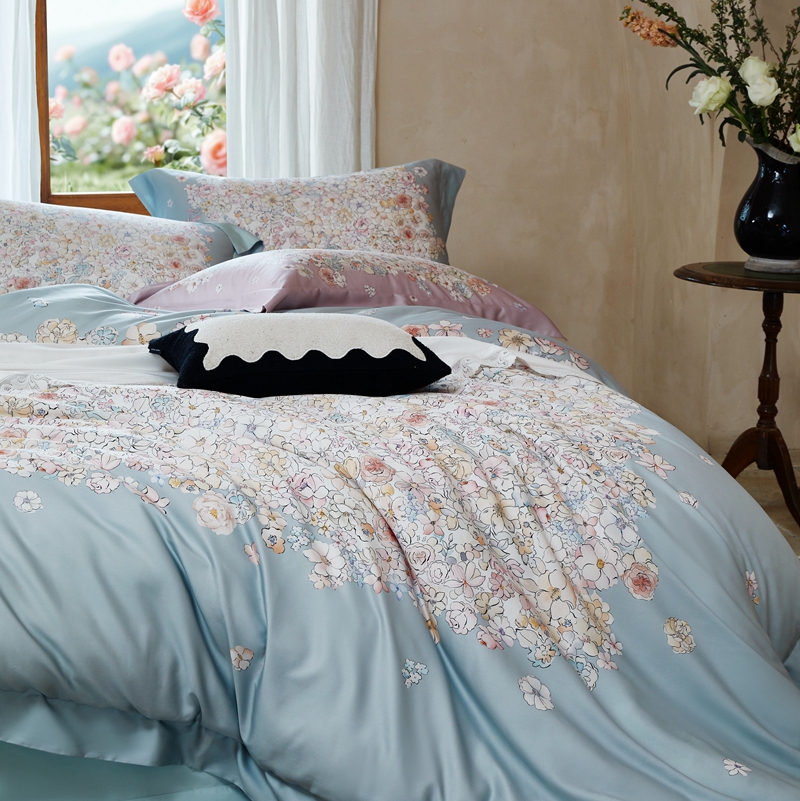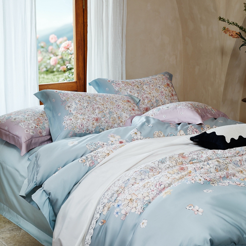嘉恋家纺 2024新款东帝兴100支天丝棉数码印花四件套 天真蓝